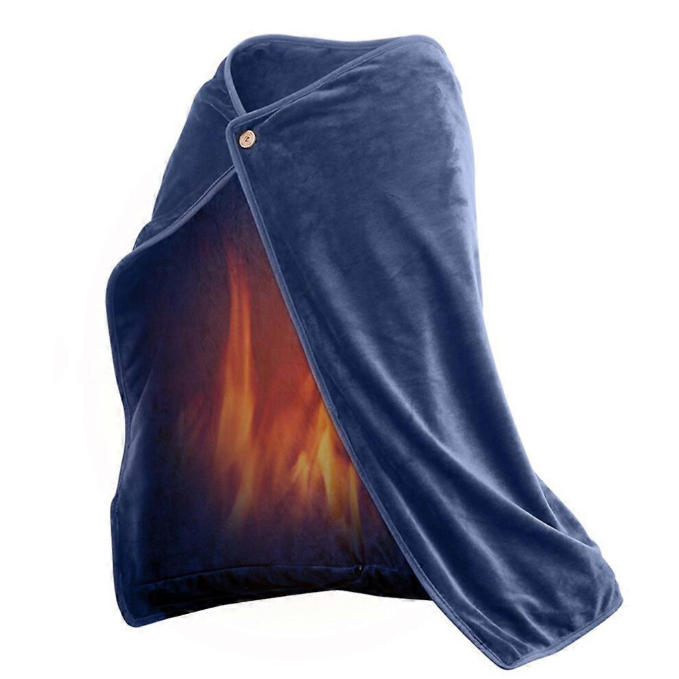 (Navy Blue) USB Electric Heated Blanket Soft Heated Office Use Throw Winter Warmer Shawl