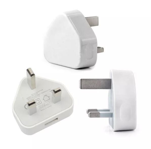 White Usb Plug for Iphone Uk 3 Pin Adapter Wall Plug- Charger Phone Mains Charge