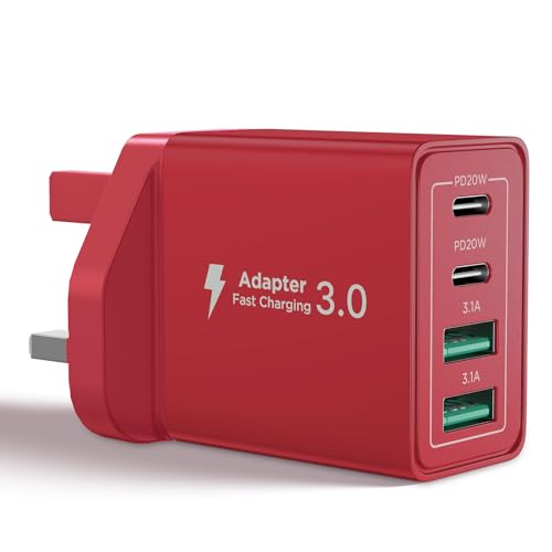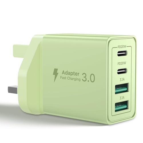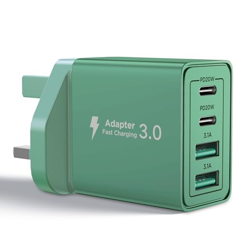 USB C Plug Fast Charger 40W 4 Port with Dual PD 3.0 & QC Multi Phone Charger Adapter UK Wall Mains Plug for iPhone 16 15 14 13 12 11 Pro Max X XR XS 8 7 6 6S Plus 5 5S SE,iPad,AirPods,Samsung