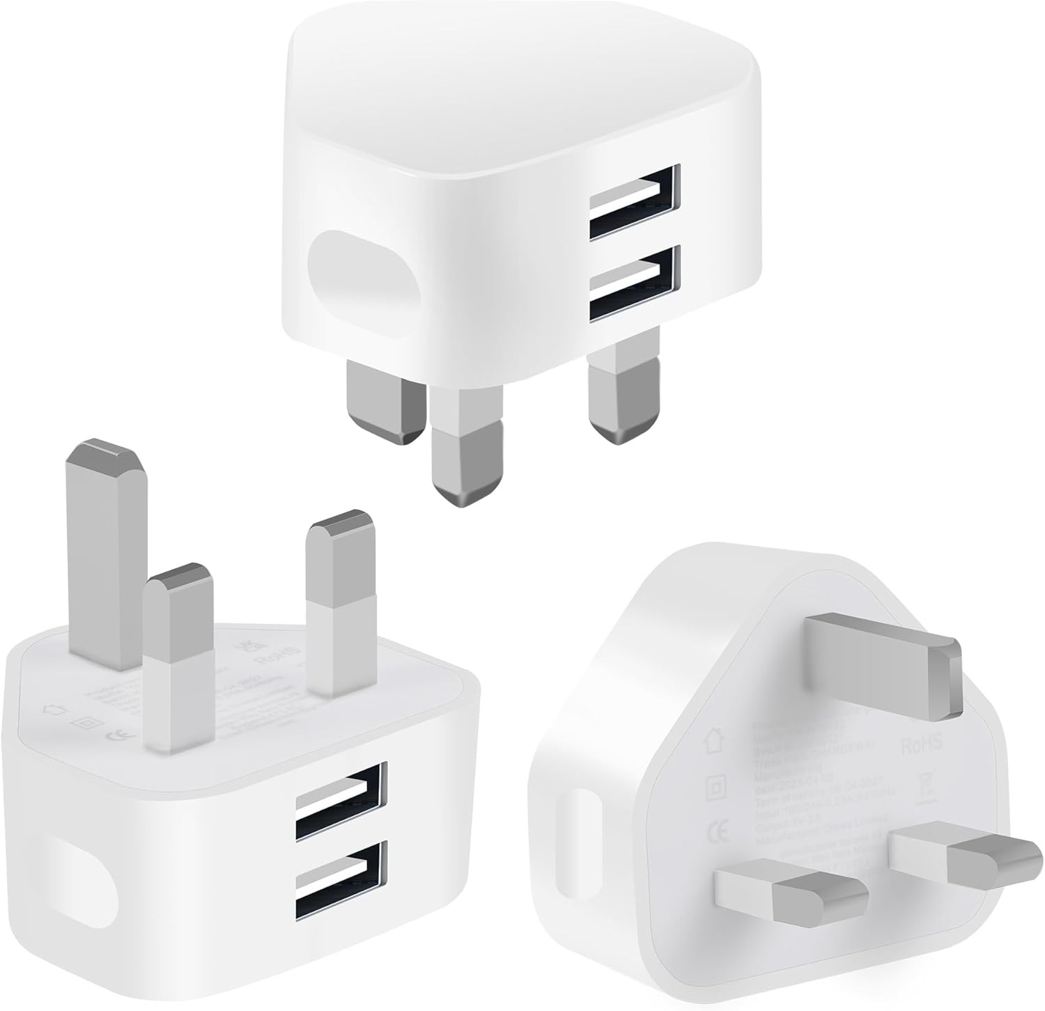2 Pack USB Plug UK 3 Pin Mains Charger,Rekavin USB Wall Charger Plug Adapter UK