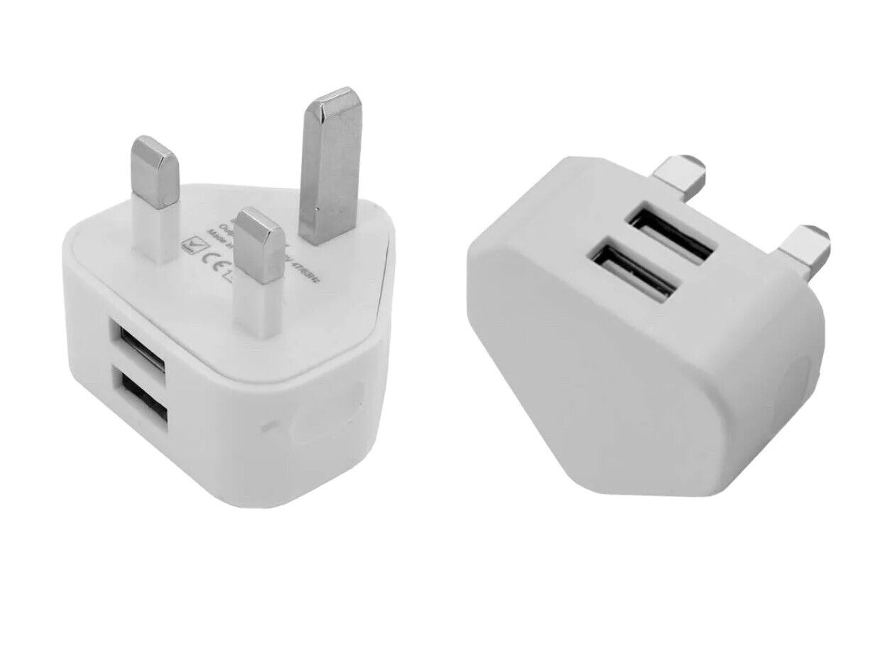 2.1A Fast Dual Twin 2 USB Port Charger UK Mains Wall Plug Adapter 3 Pin Stock x2