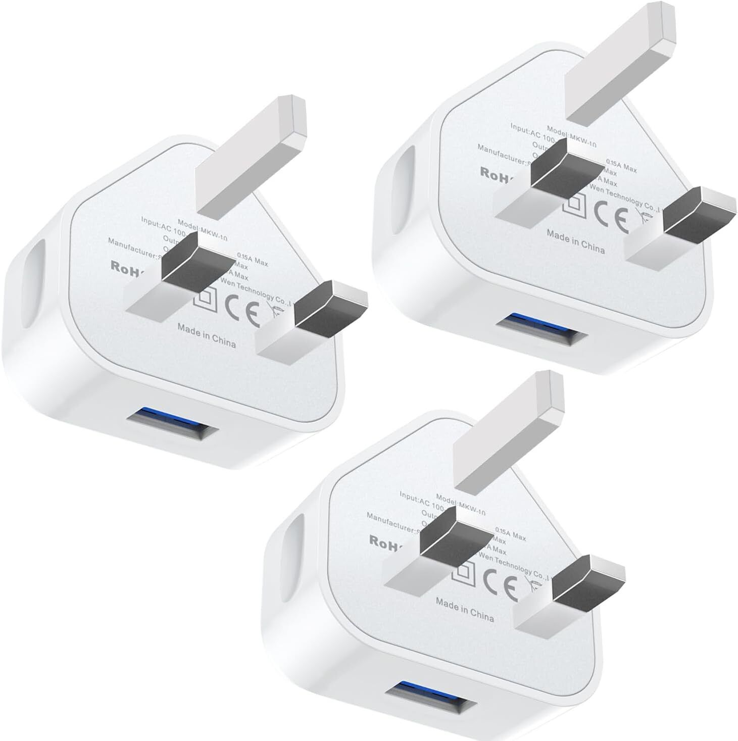 CHARGEWAY White Usb Plug For Iphone Plugs Uk 3 Pin Adapter Wall Plug-Usb Charger Mobile Phone Mains Chargers Compatible With Other Mobiles/Iphone/Samsung/Ipads/Watches/Airpods