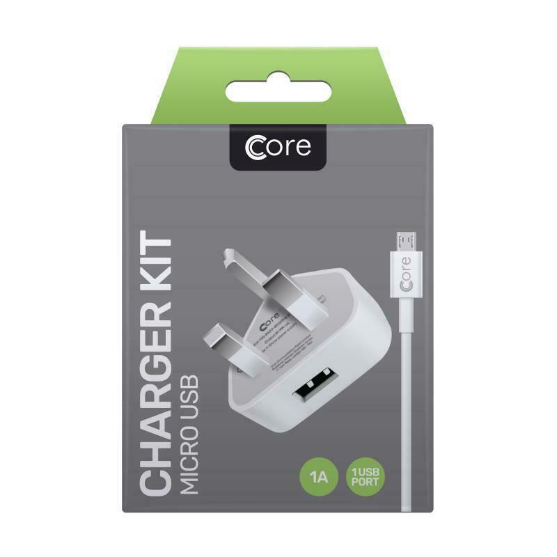 Core USB Charger 3 Pin UK Mains Wall Plug Adapter Kit with Micro USB Cable - UK