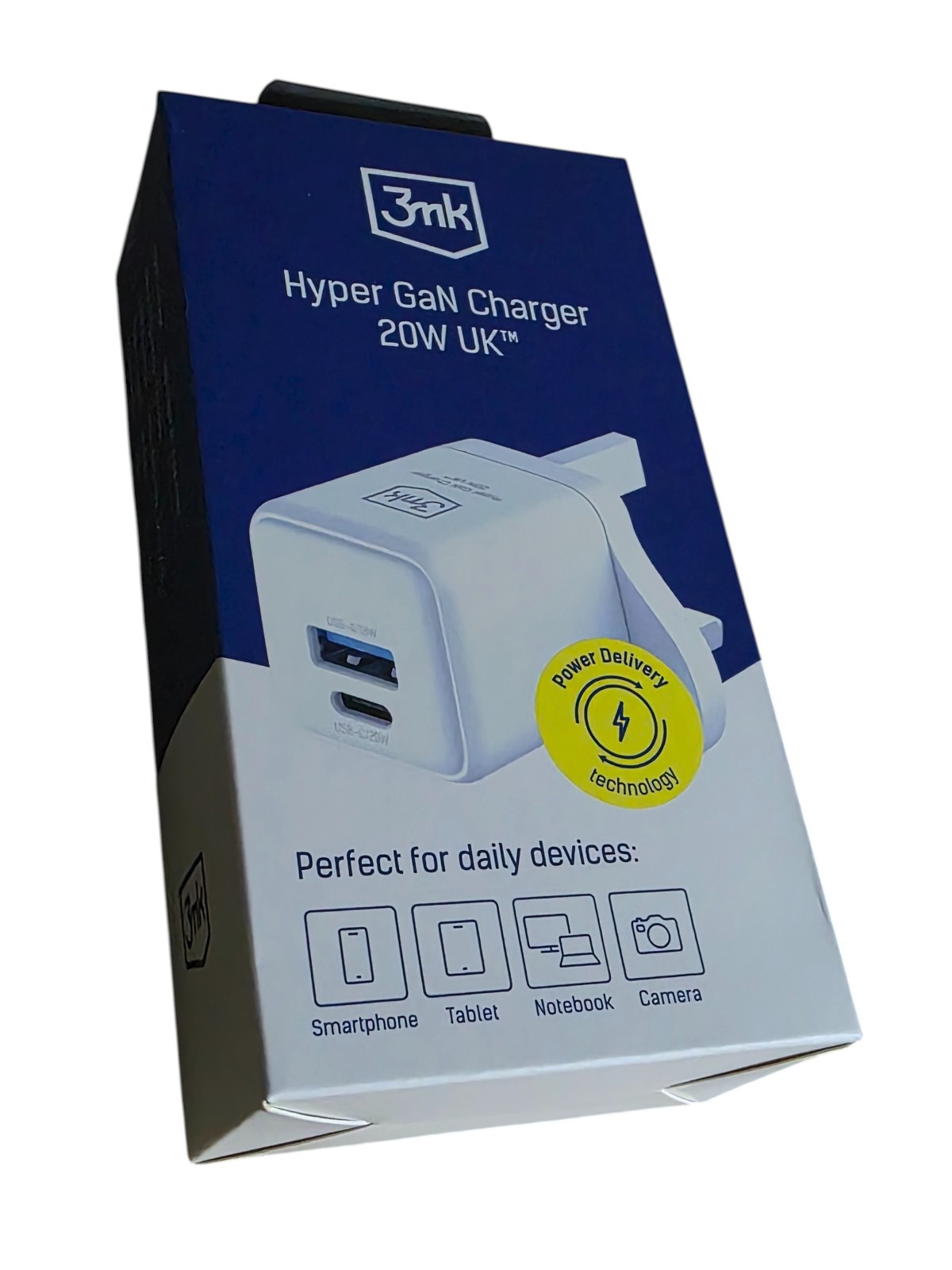 3mk Dual USB-C USB-A Charger 20W Hyper GaN UK 5V/3A 12V/1.67A Mains Adapter Plug