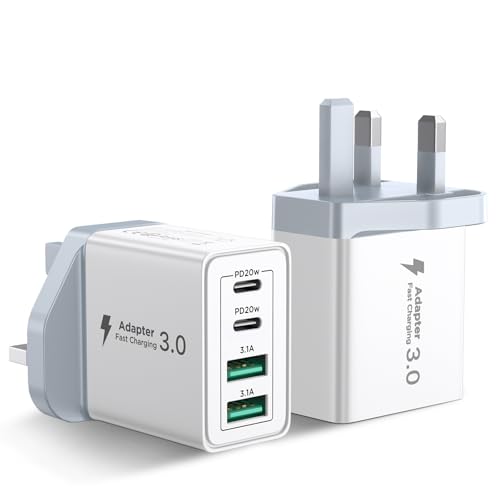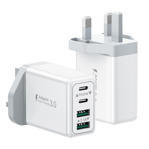 2-Pack USB C Plug Fast Charger 40W 4 Port with Dual PD 3.0 & QC Multi Phone Charger Adapter UK Wall Mains Plug for iPhone 16 15 14 13 12 11 Pro Max X XR XS 8 7 6 6S Plus 5 5S SE,iPad,AirPods,Samsung