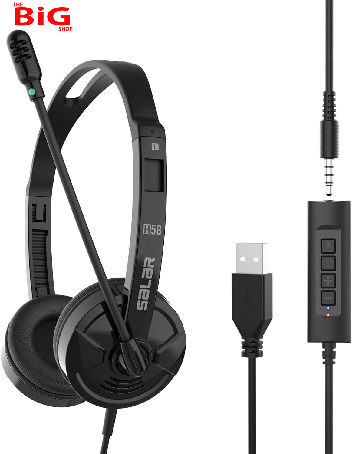 USB Headsets with 3.5Mm Jack Noise Cancelling Mic & Audio Controls, Wired Stereo