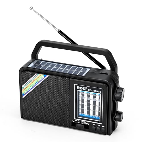 Portable FM AM SW Radio with Bluetooth, Solar Panel & Torch Light, USB/TF MP3 Player, Rechargeable Battery - Digital Battery Operated Radio for Home and Outdoors (Sloar BT, Silvery)