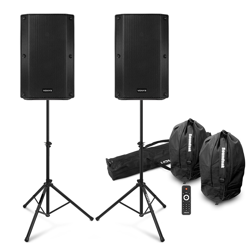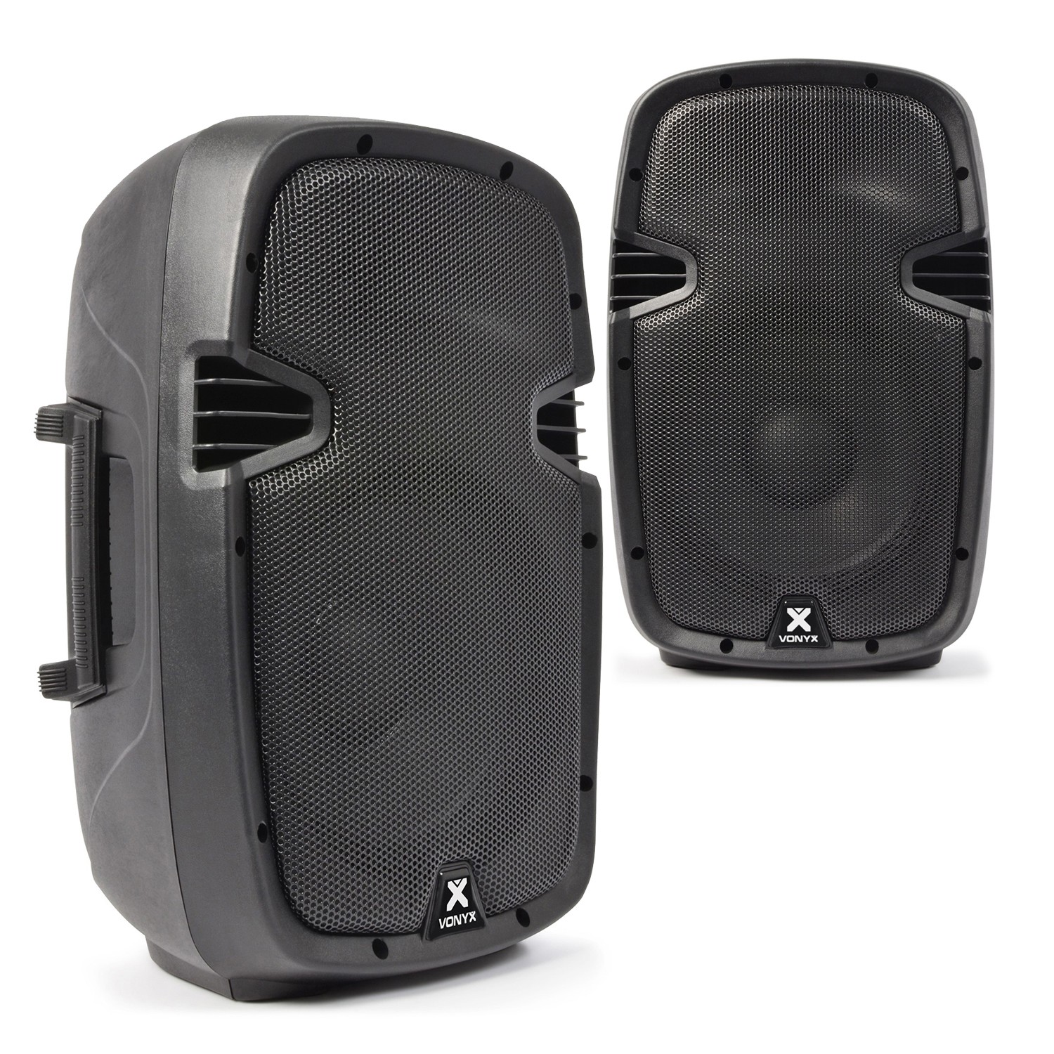 Pair Vonyx VSA10BT Bluetooth Active DJ Speaker Package with USB MP3 Media Player