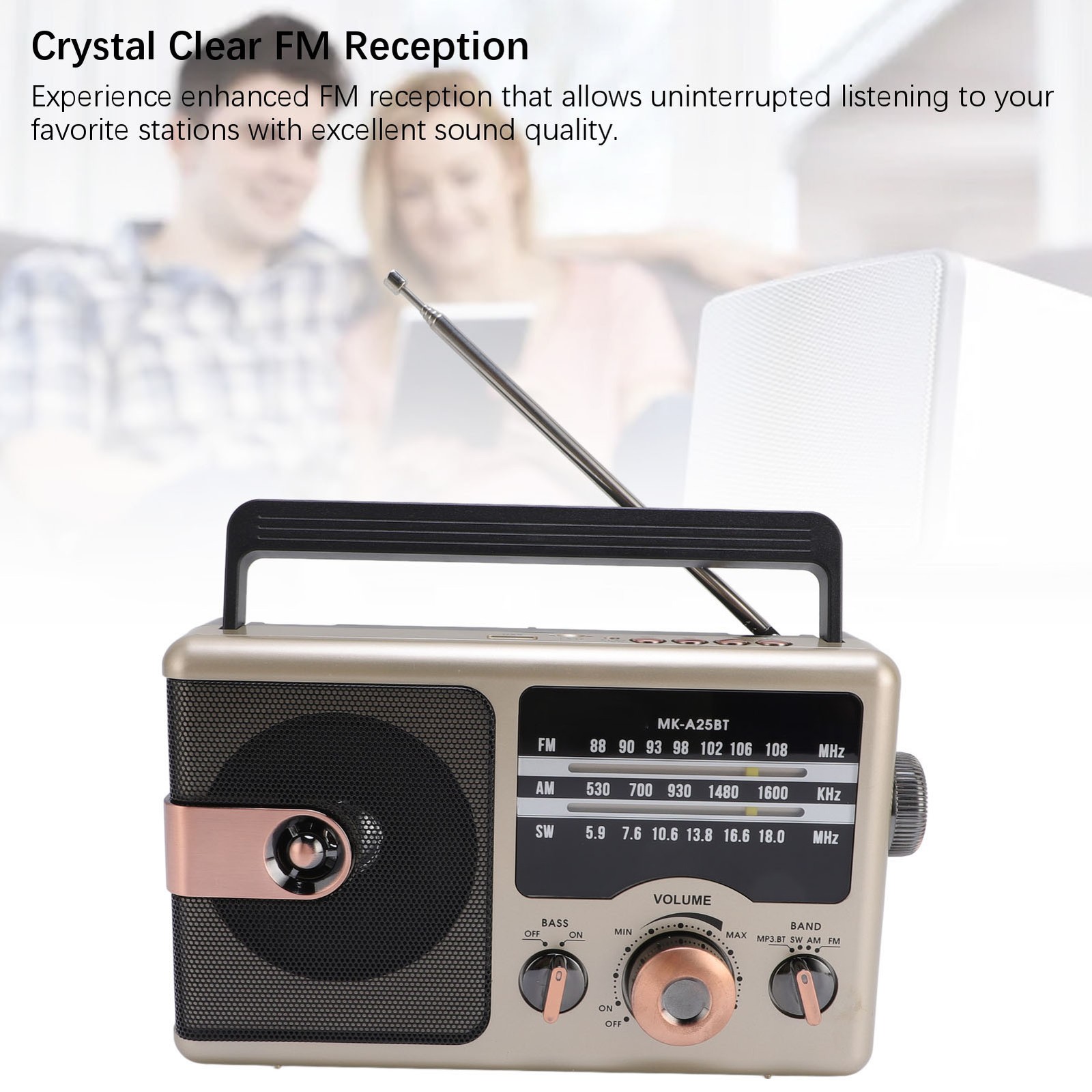 jgstore17 (Black) Portable Vintage Retro AM FM Radio bluetooth Speaker TF Card USB MP3 Music Player