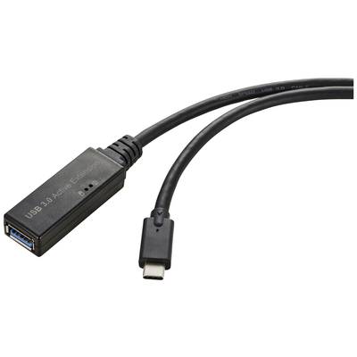 Renkforce USB cable USB 3.2 1st Gen (USB 3.0 / USB 3.1 1st Gen) USB-C® plug, USB-A socket 5.00 m Black Battery / signal amplifier combo, incl. OTG function