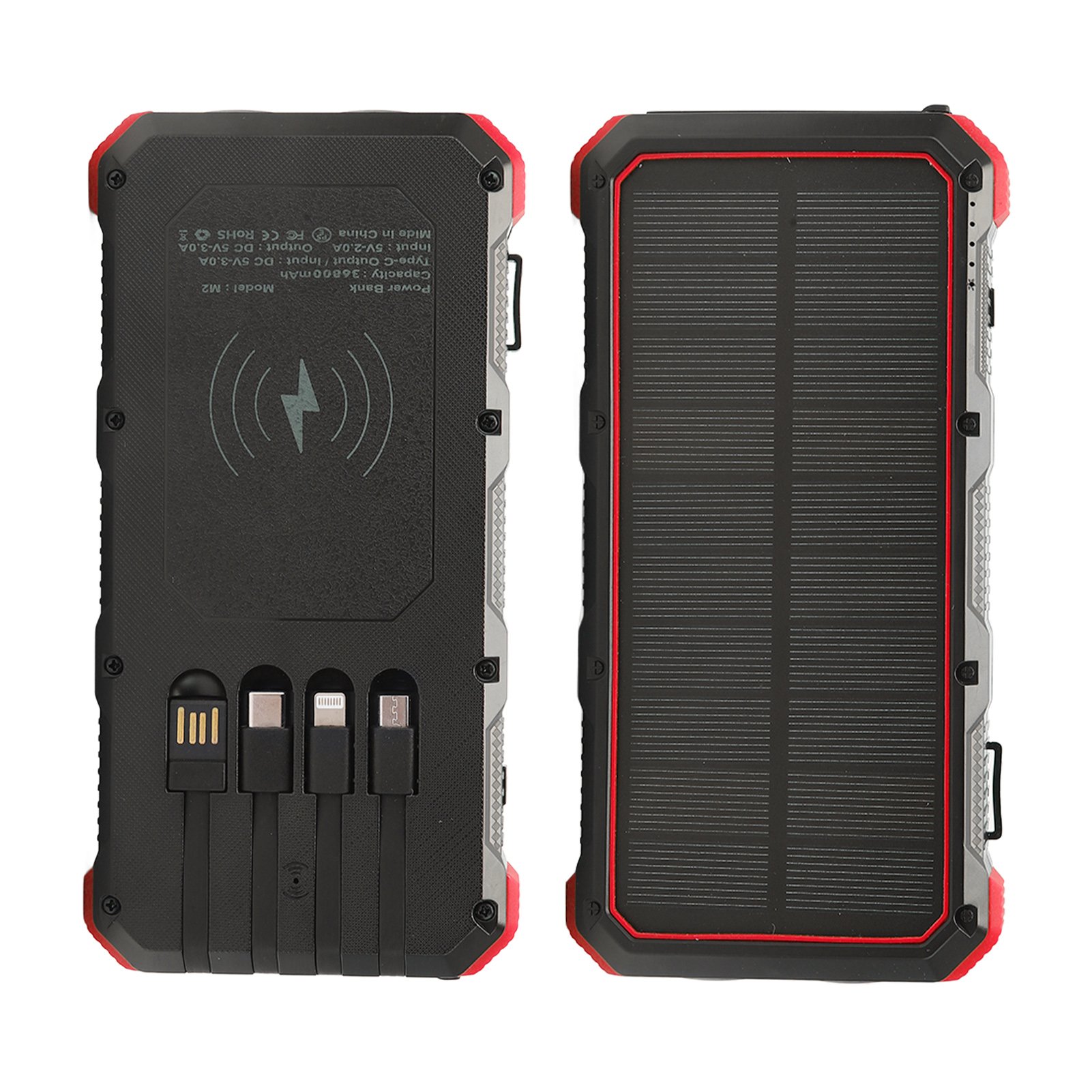 Red Solar Power Bank 50000mAh Aluminum Alloy USB Portable Charger Battery Pack