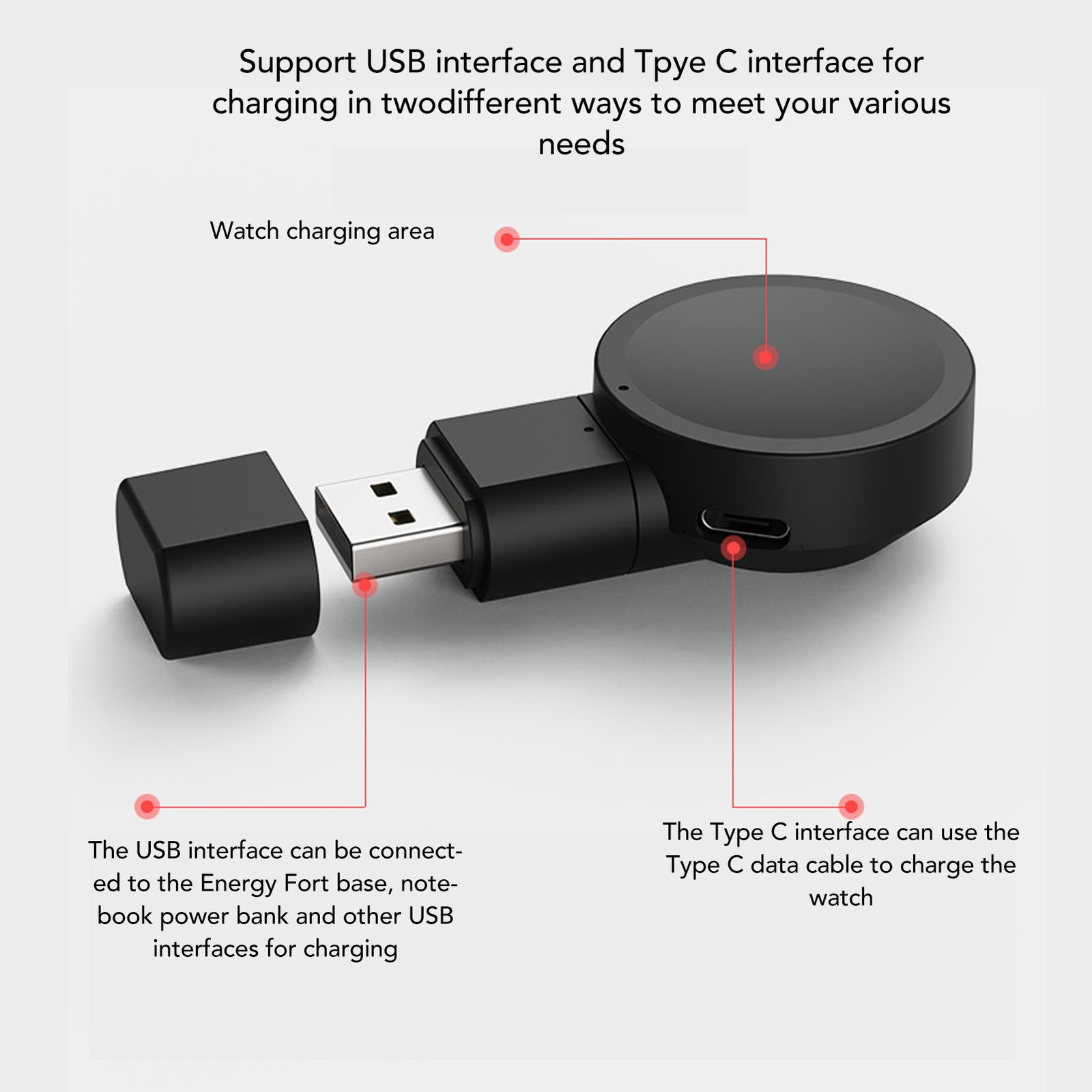 Socobeta Portable USB Charger Cable and Dock Holder Compatible with HW 22 19 for Smartwatch - Camping Sports