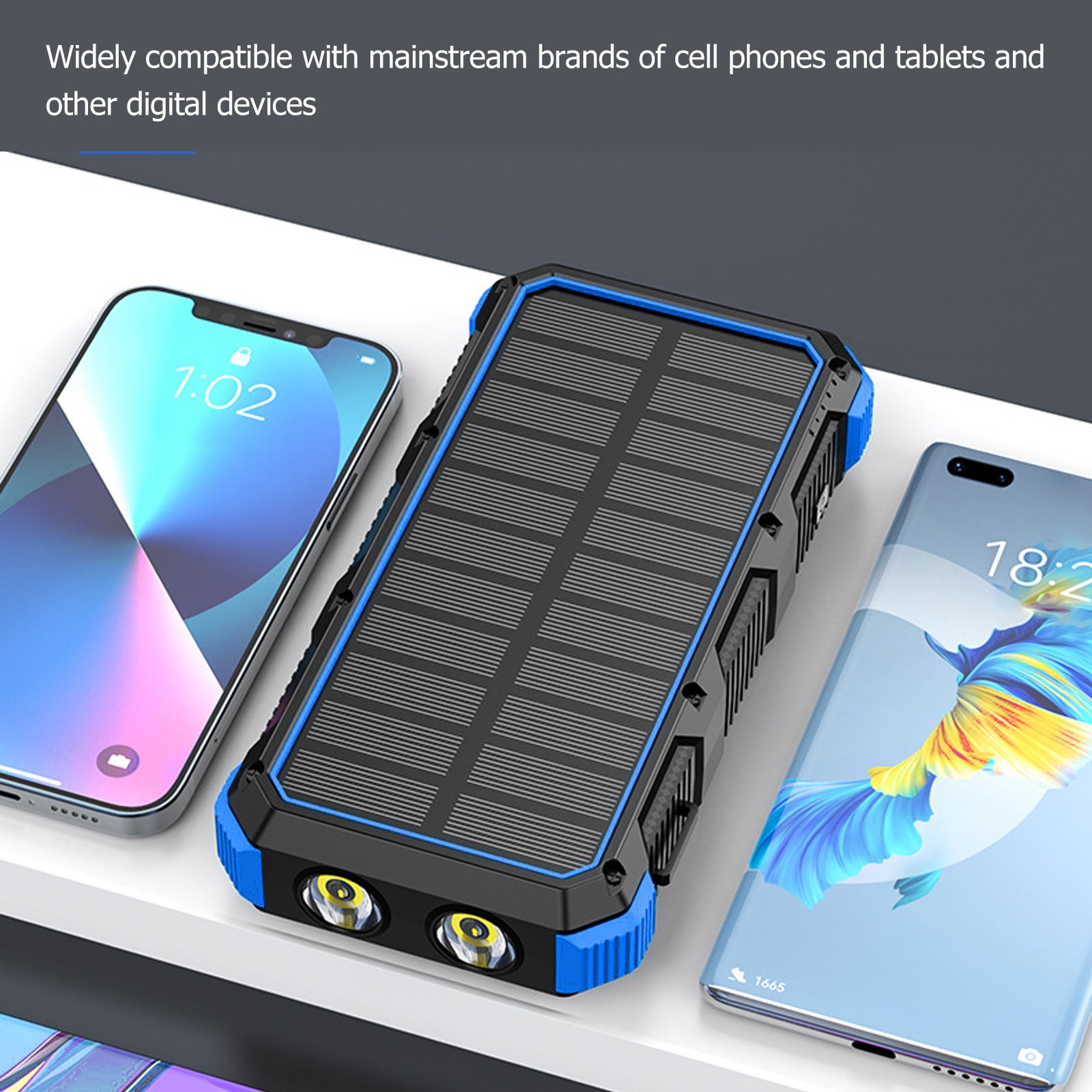 Blue Solar Power Bank 36800mAh Quick Charging 3 USB Portable Solar Charger W LW