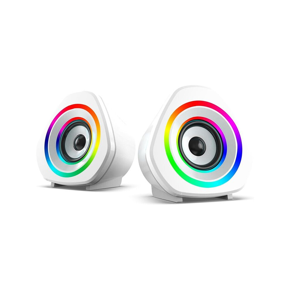 MAMBASNAKE Computer Speakers, 2.0 USB Powered PC Speakers Stereo Volume Control, 6 RGB LED Backlit Effect, Wired Mini Portable Gaming Speakers with 3.5mm for Desktop Computer/PC/Laptops (White)