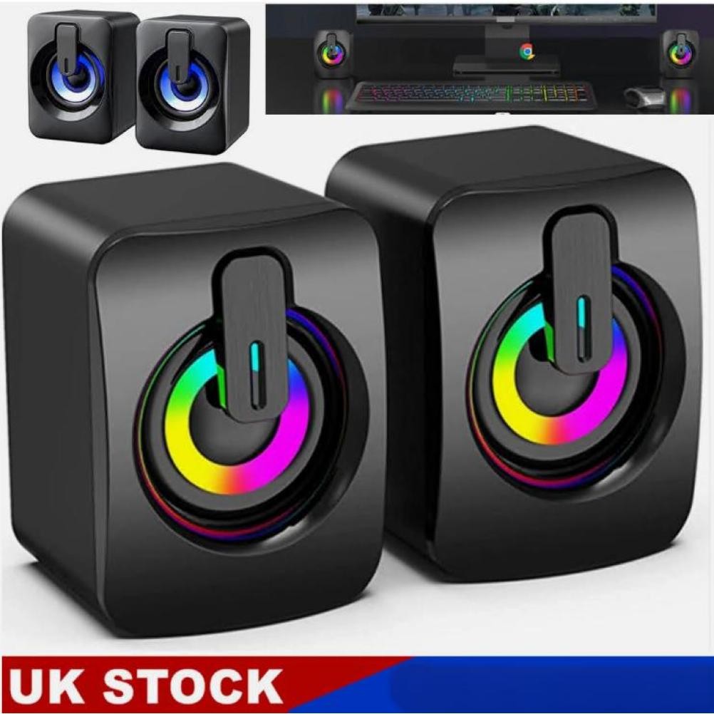 Computer Speakers USB Powered PC Speakers Stereo Volume Controlw/RGB Light UK