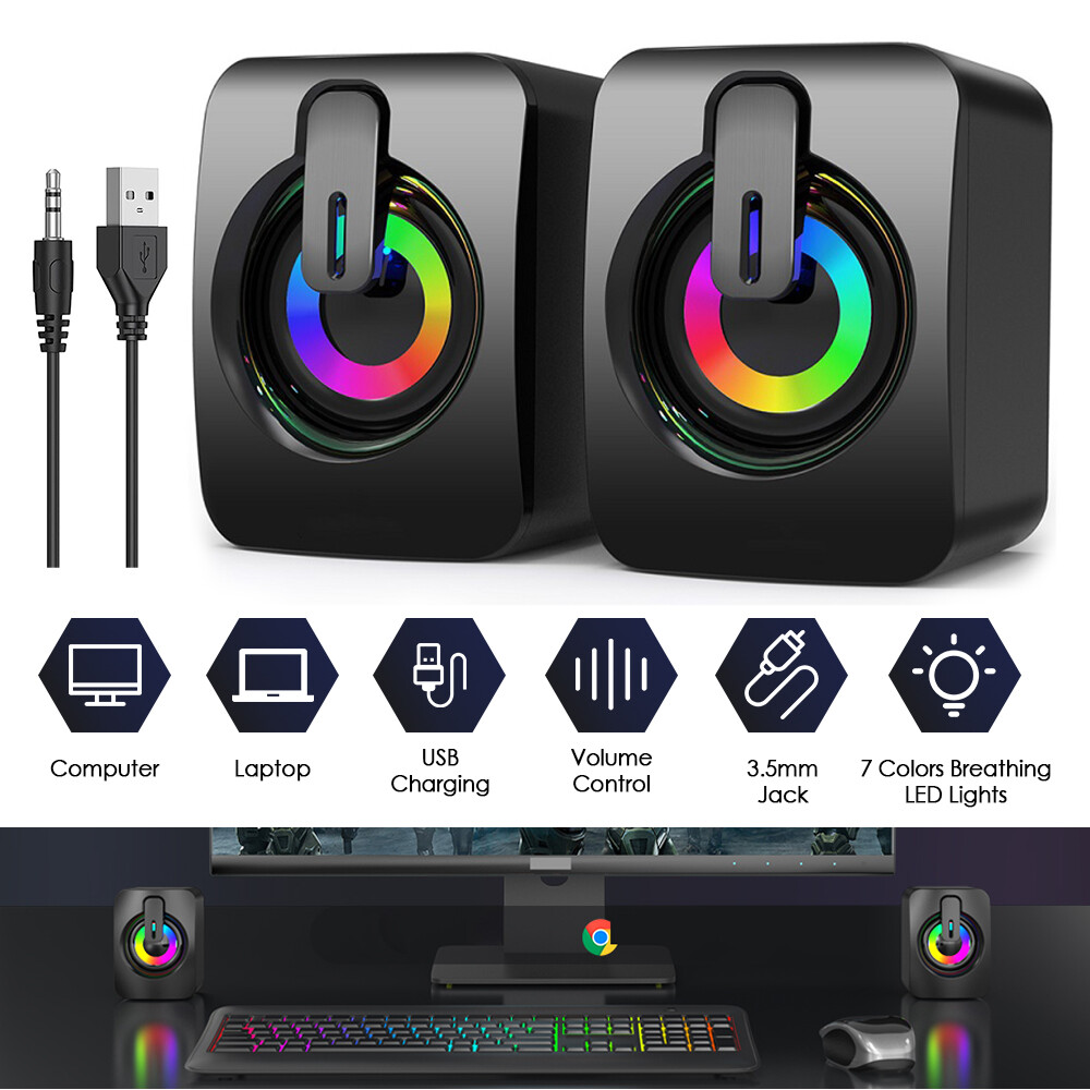 USB Powered Computer Speakers with Muti RGB Light, Mini Speakers with 3.5mm Aux