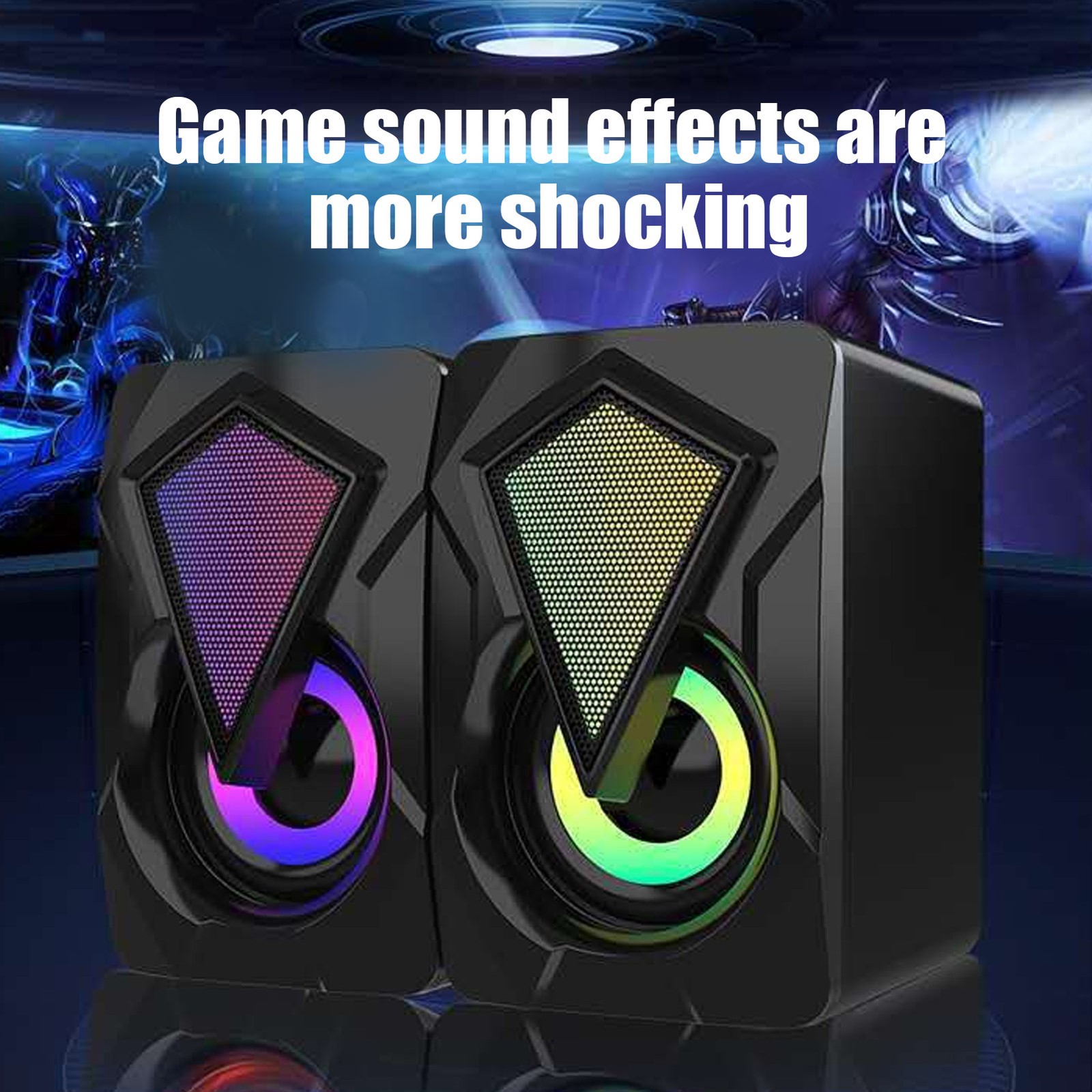 Computer Speakers, 2.0 USB Powered PC Speakers Stereo Volume Control, 6 RGB LED Backlit Effect, Wired Mini Portable Gaming Speakers with 3.5mm fo