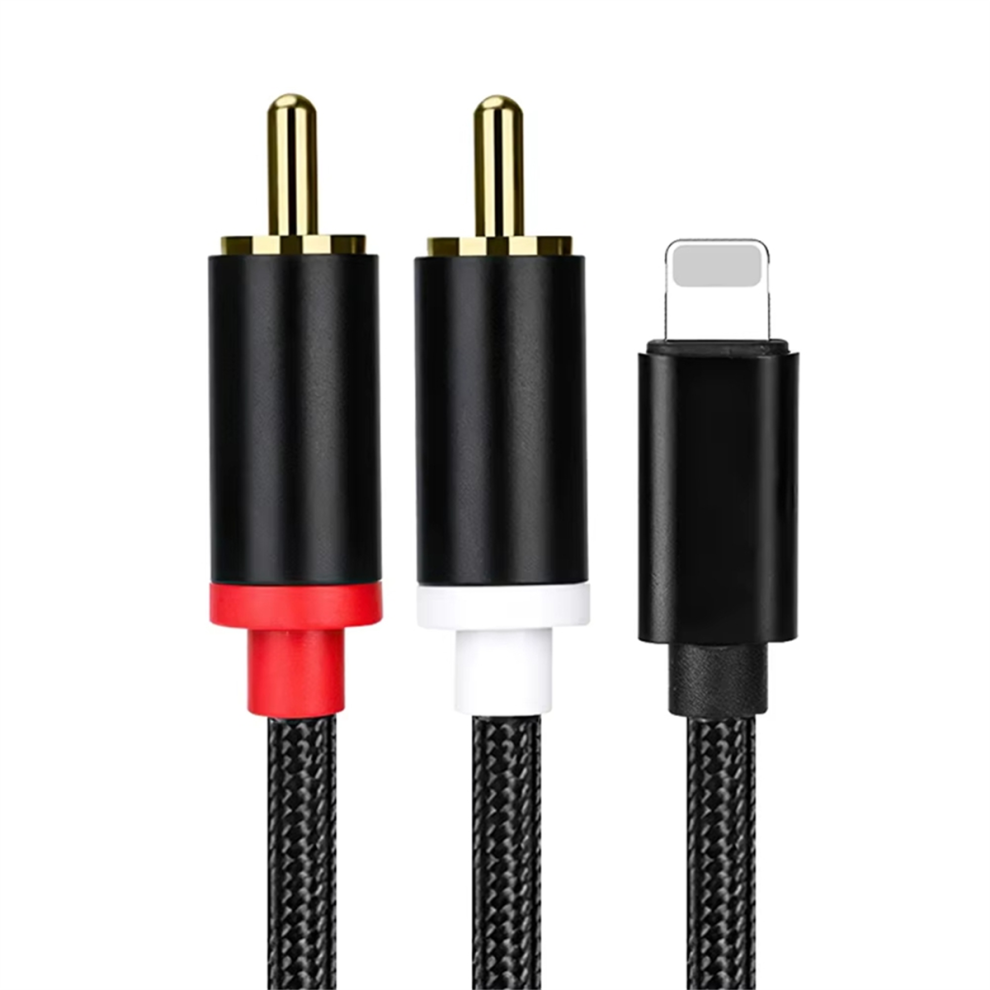 USB L to 2 RCA Y Splitter for IPhone 6 Audio Connector Wire 2 meter