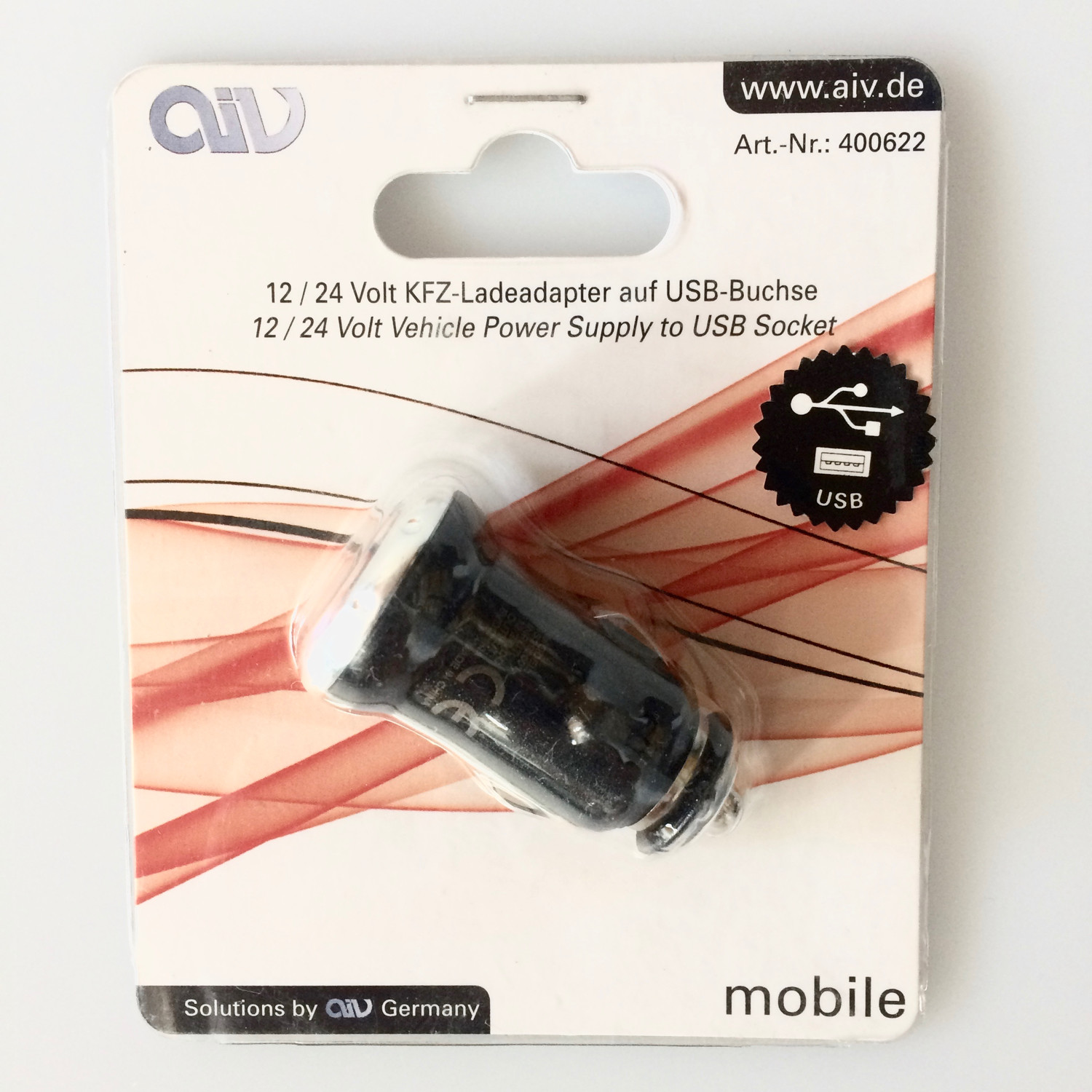 Car Charging Adapter 12V 24V Male to USB Charging Socket AIV 400622 # 600068
