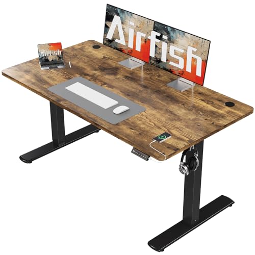 Airfish Electric Height-Adjustable Desk with USB socket,Function Desk with Memory Function,Sit Stand Desks 73-118cm Stand Up Rising Table Office (Rustic Brown, 140 x 60 cm)