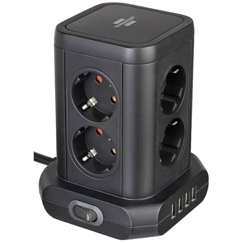 Brennenstuhl Socket Tower 8-fold with USB (Socket Block 8-fold with 4x USB, sockets in 45° arrangement, 2m cable) black