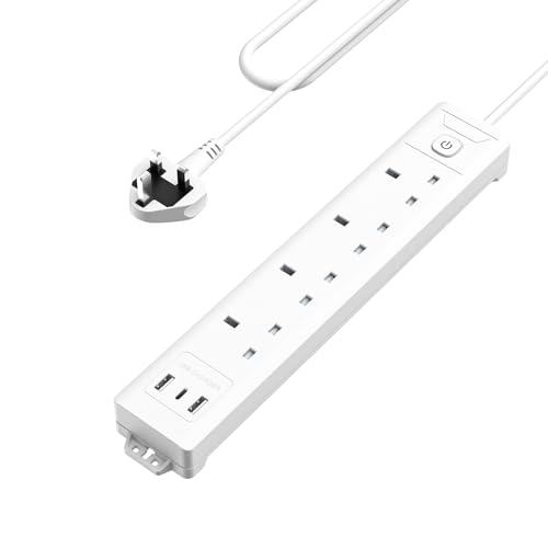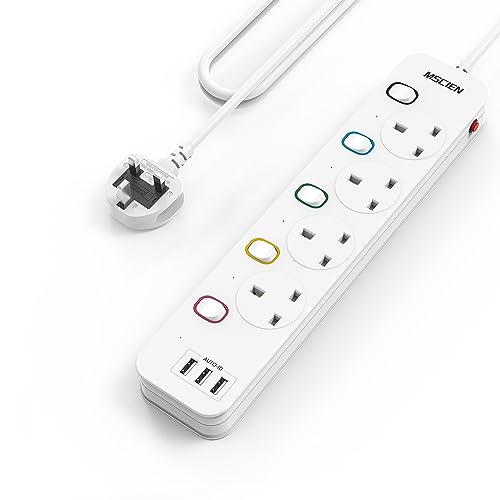 Mscien 3M Extension Lead with USB Slots, 4 Way 3 USB Extension Socket with In...