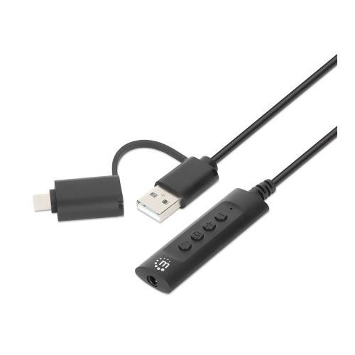 Manhattan USB-C & USB-A to 3.5 mm Stereo Audio Aux Adapter Cable 2-in-1 Male ...