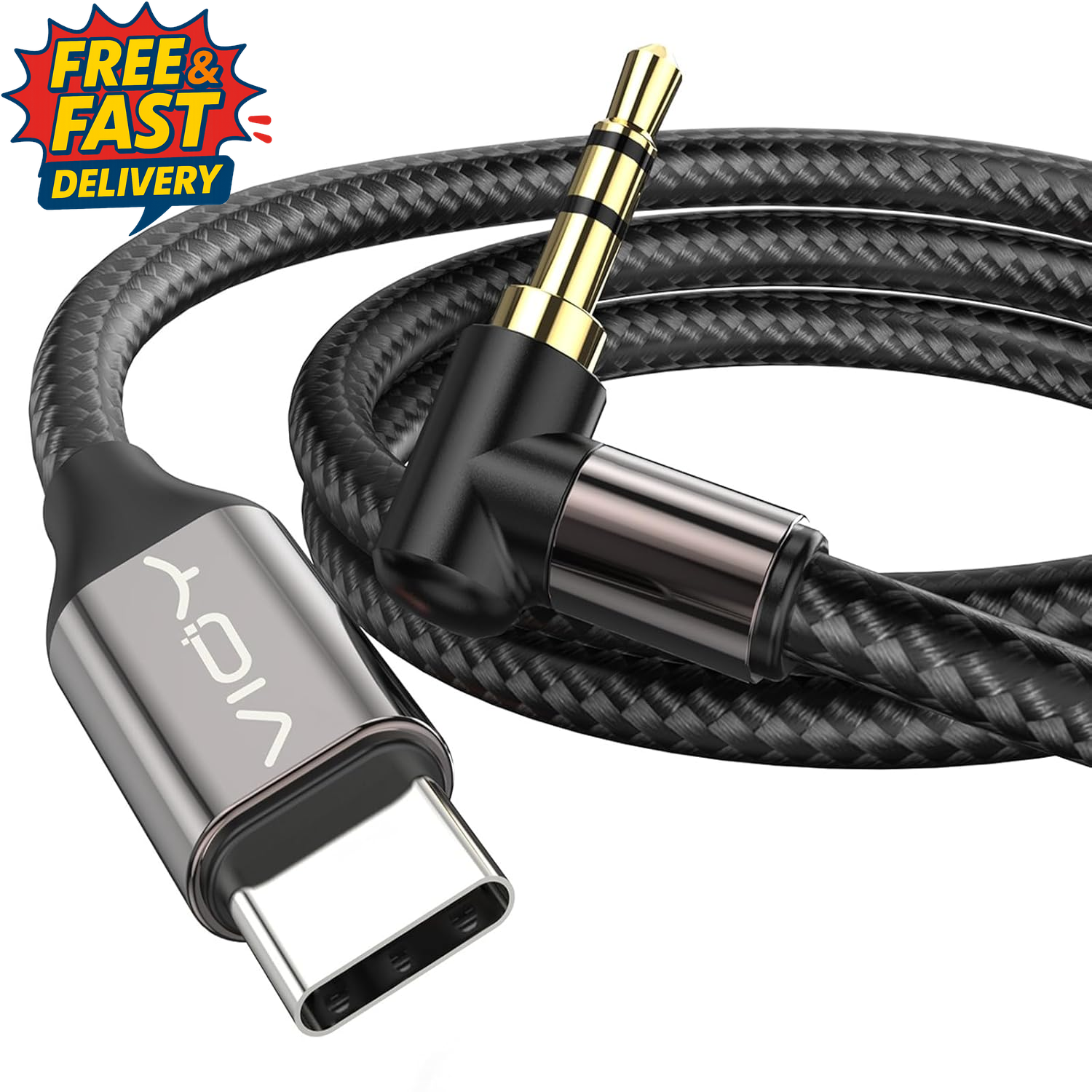 VIOY USB C to Aux 2 M, Type C to 3.5mm Male Aux Cord for Car 90 Degree, USB-C t