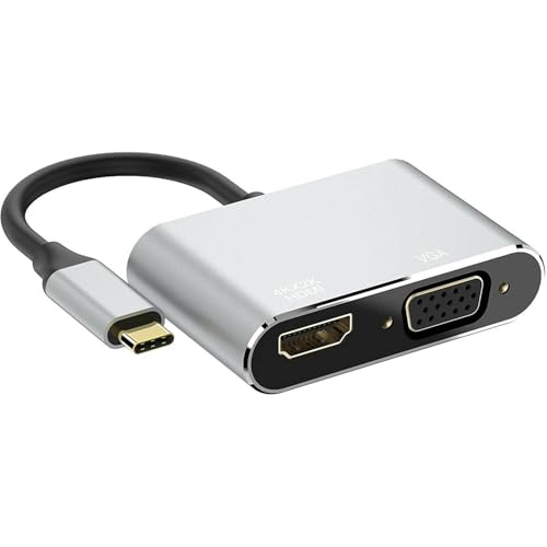 USB-C to HDMI VGA Hub 2-in-1 – USB Type-C Adapter with 4K HDMI, VGA, USB 3.0 & 100W PD Charging for Laptop, Tablet & Phone