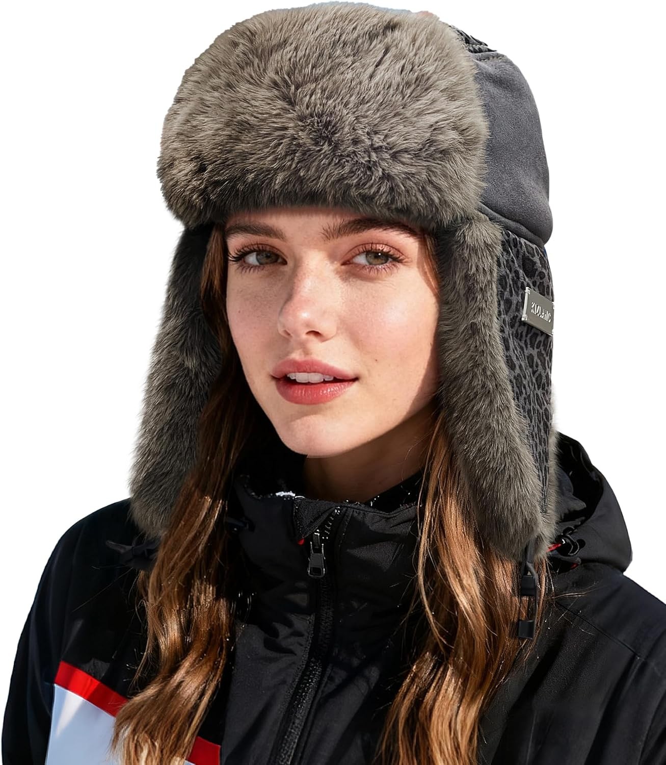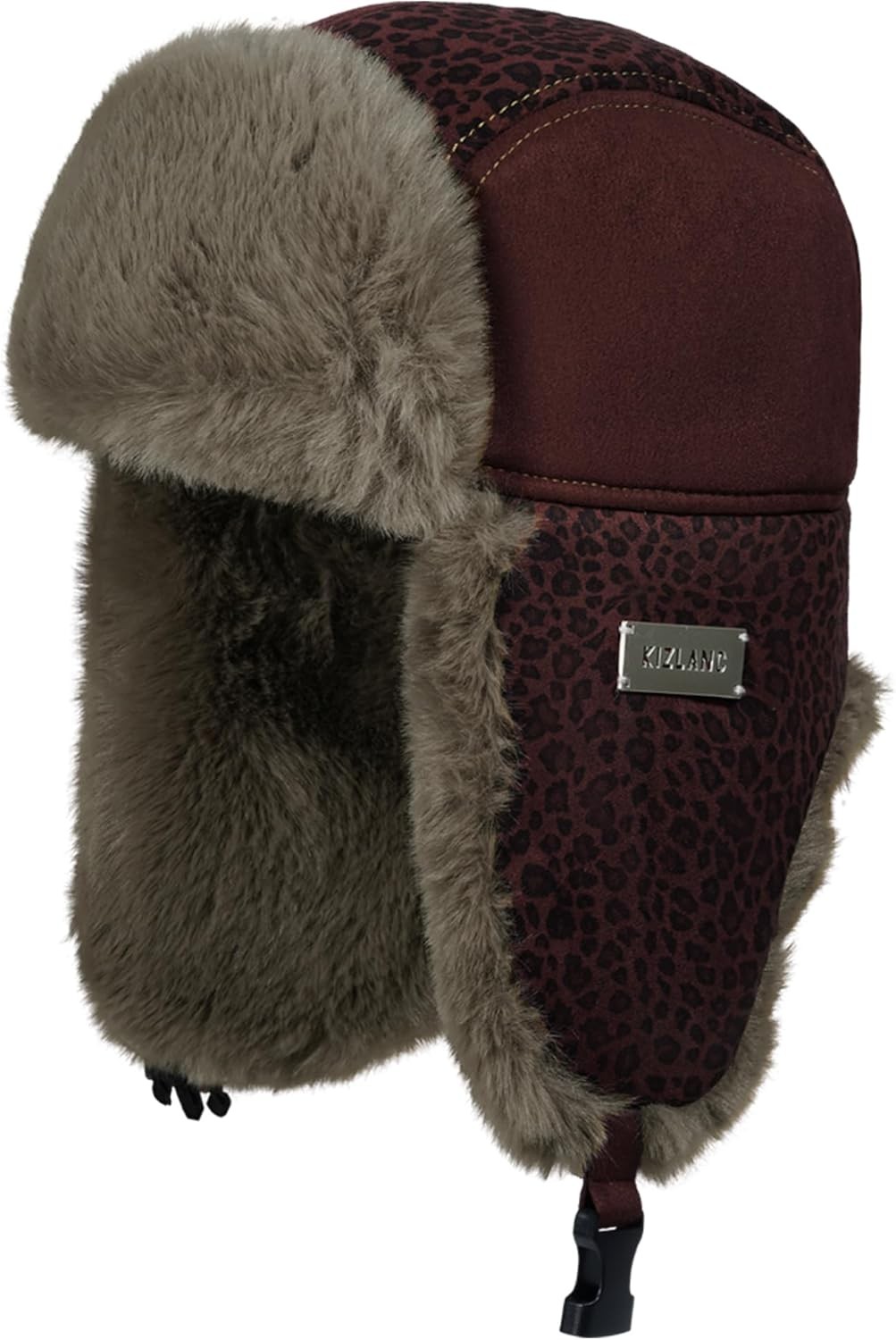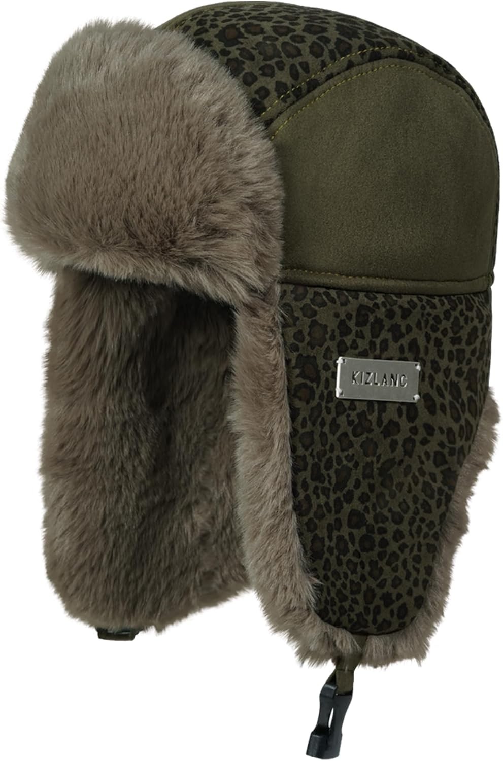 Clakllie Warm Leopard Print Trapper Hat Winter Faux Suede Ushanka Russian Hat Thick Bomber Hats Cold Weather Trooper Hats,PL2514-Gray