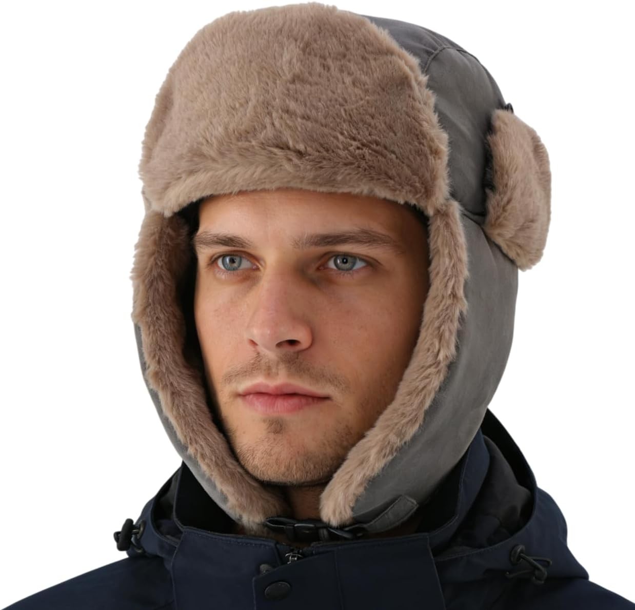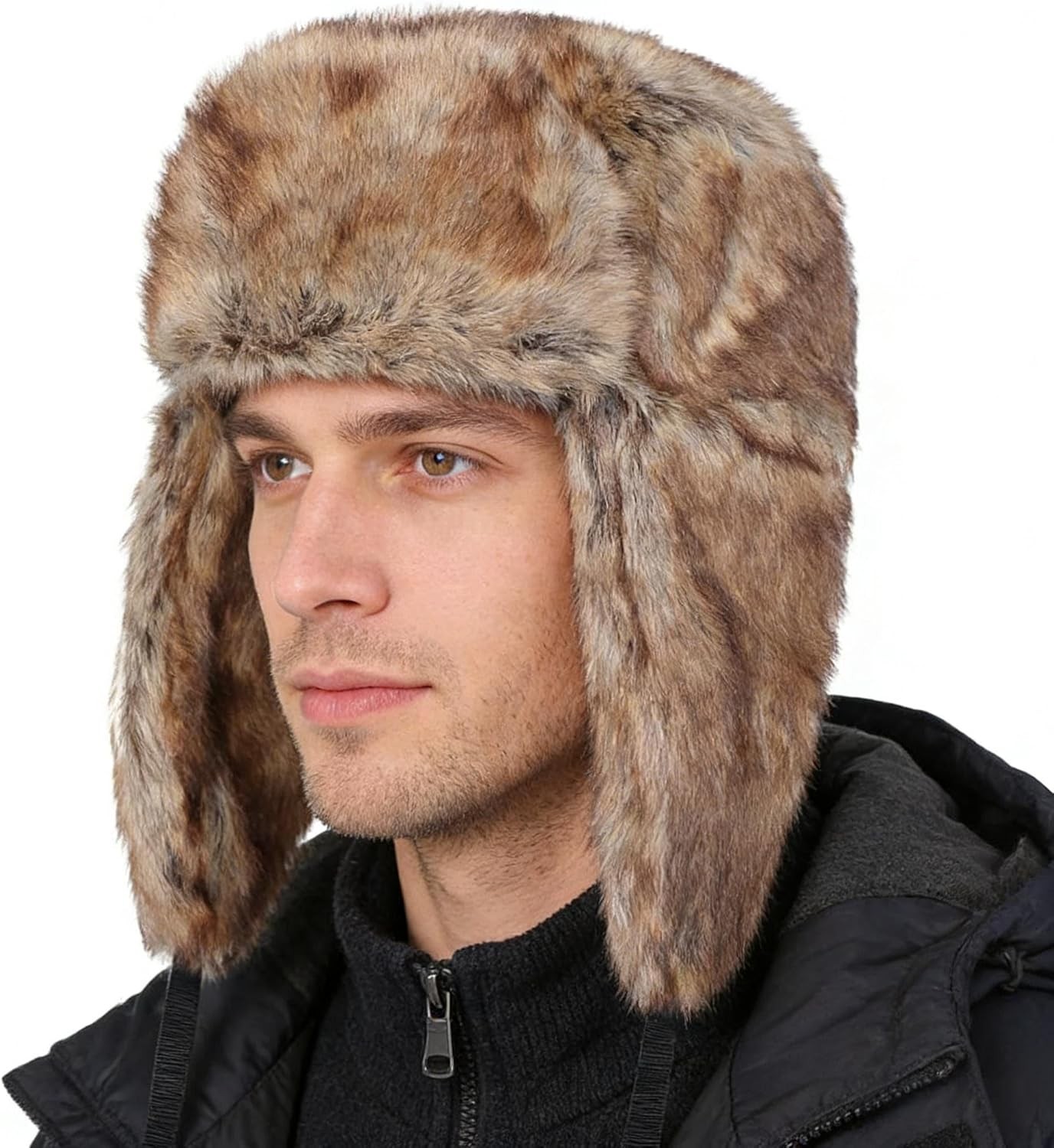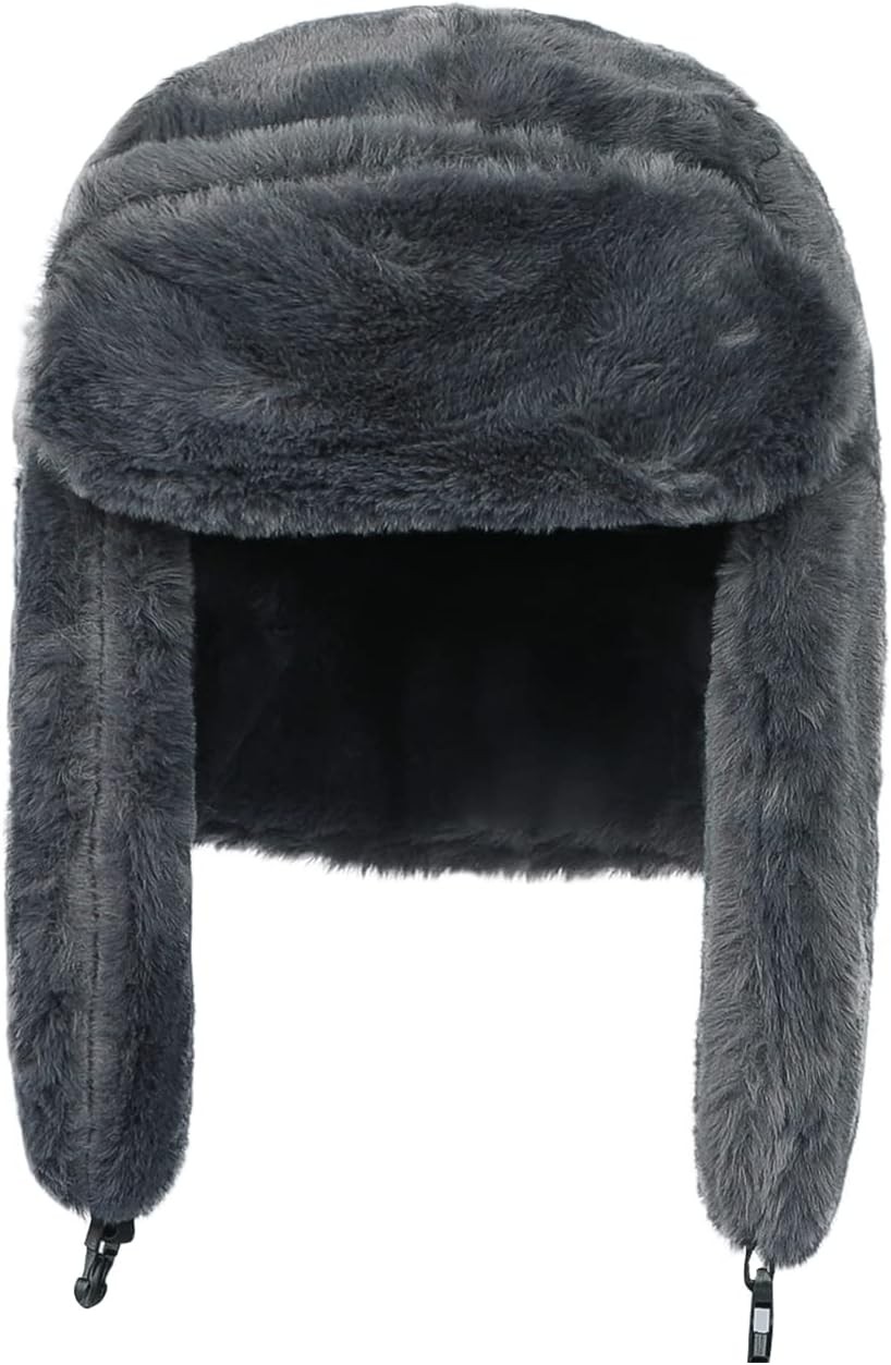 ITODA Unisex Faux Fur Trapper Hats Windproof Russian Ushanka Hat Winter Warm Sn