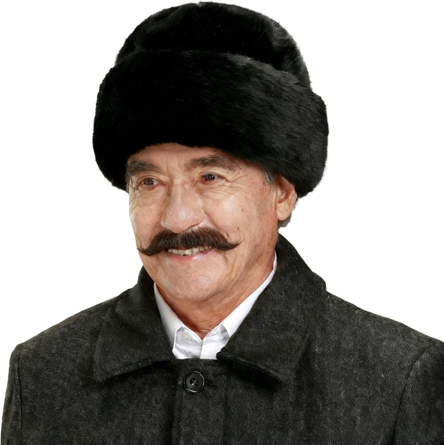 Mens Russian Winter Hat | Faux Fur Ushanka Cossack Hat with Ear Flaps & Decorative Military Pin | Soviet Style Trapper Ski Hat Perfect for Long, Cold Winter Nights One Size-58/60cm (58 cm Black)