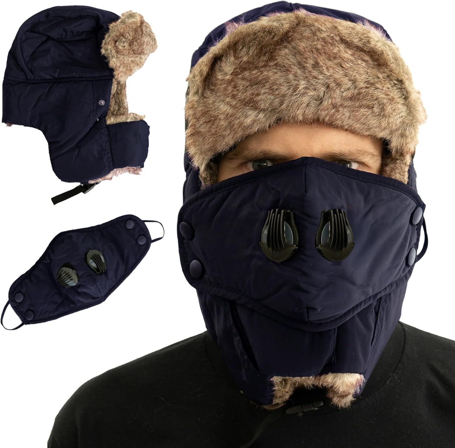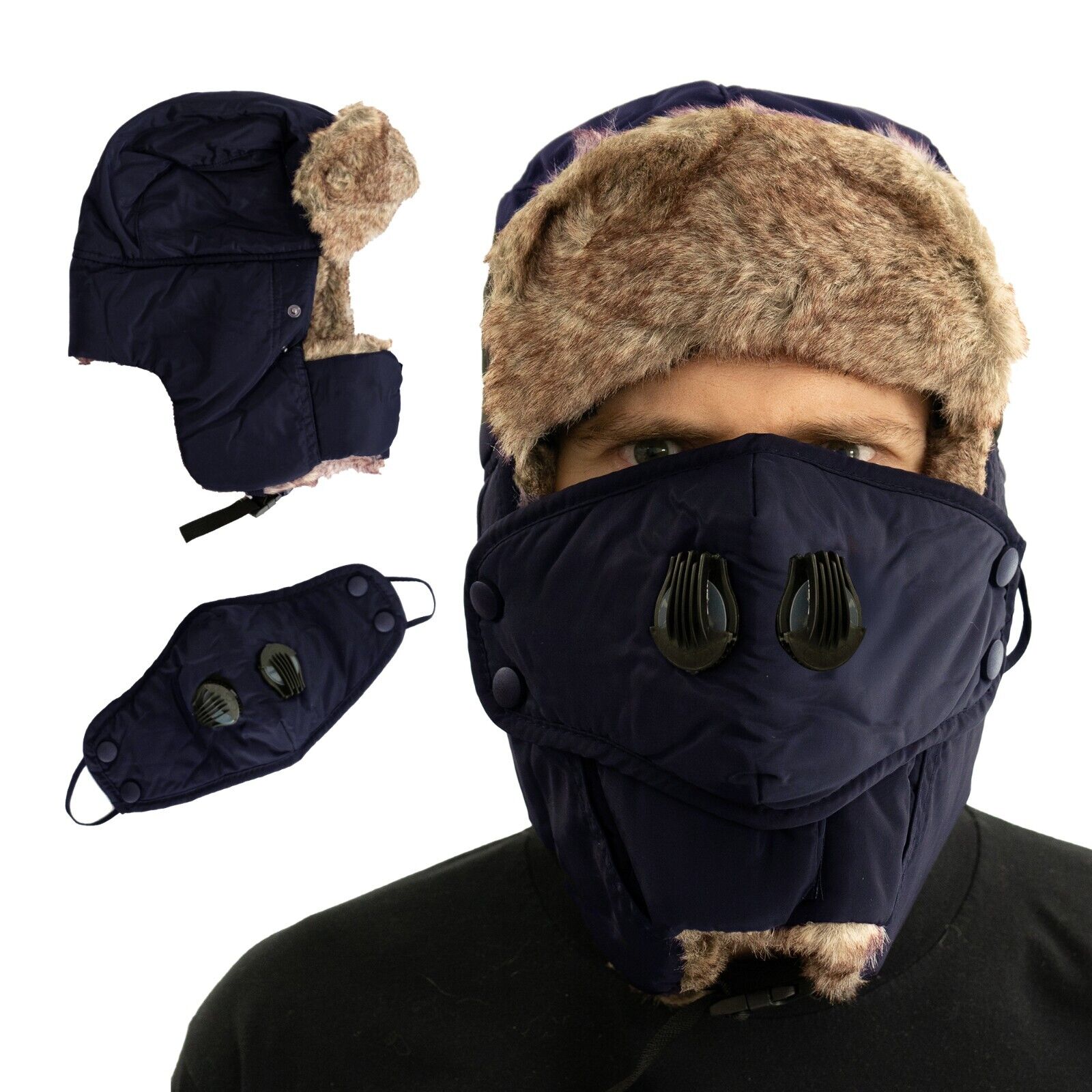 Decentron Warm Trapper Hat Windproof Winter Russian Aviator Hats with Mask Ushanka Hat (Navy Blue)