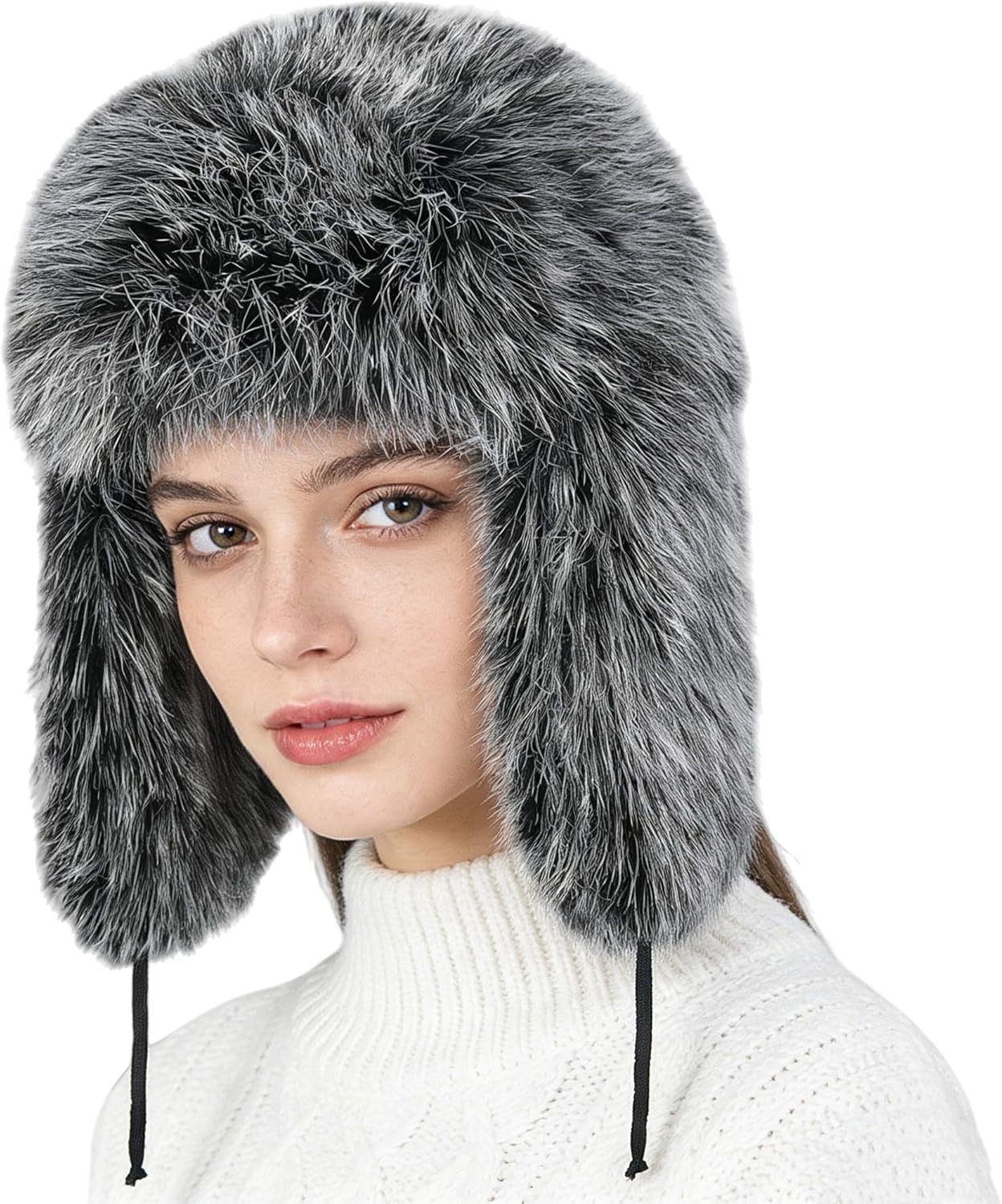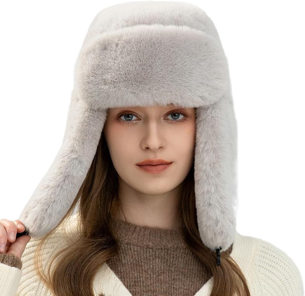 Women Winter Trapper Hat With Ear Flaps - Faux Fur Hunting Ushanka Hat - Warm F