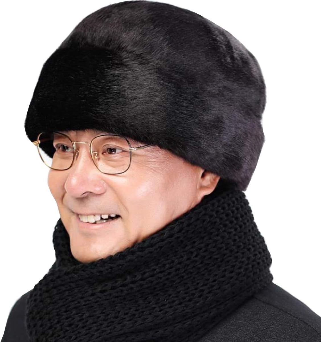 Mens Windproof Faux Fur Ushanka Russian Hat Old Dad Winter Warm Furry Beanie Sk