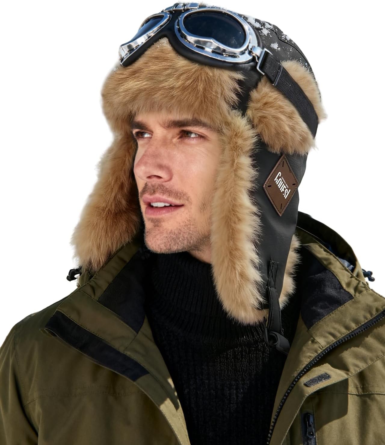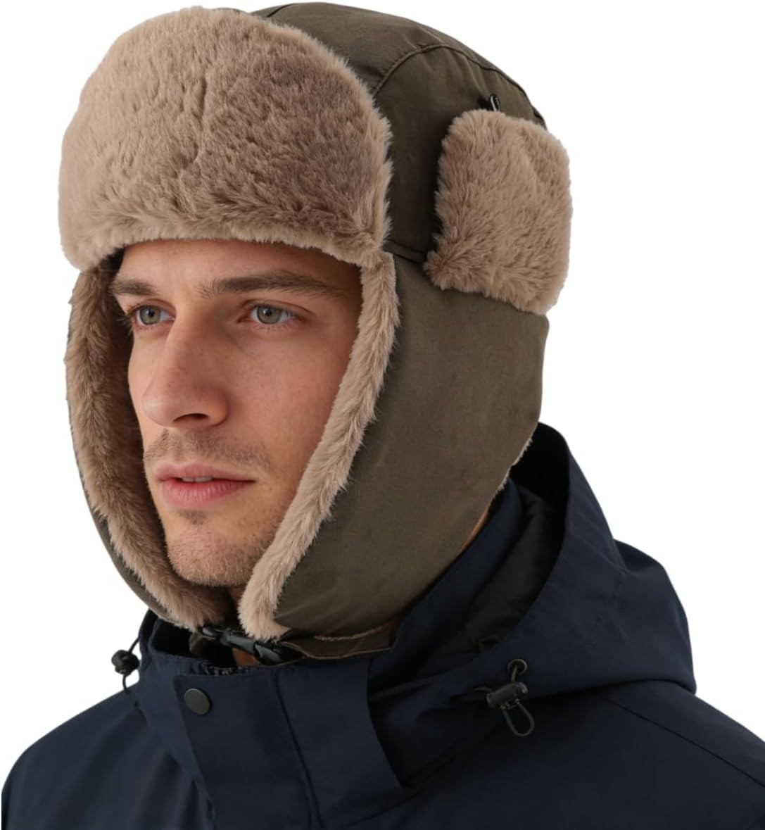 BSYLOO Winter Aviator Hat with Ear Flaps and Leather Windproof Fluffy Russian Ushanka Trapper Hat for Men and Women Brown Green