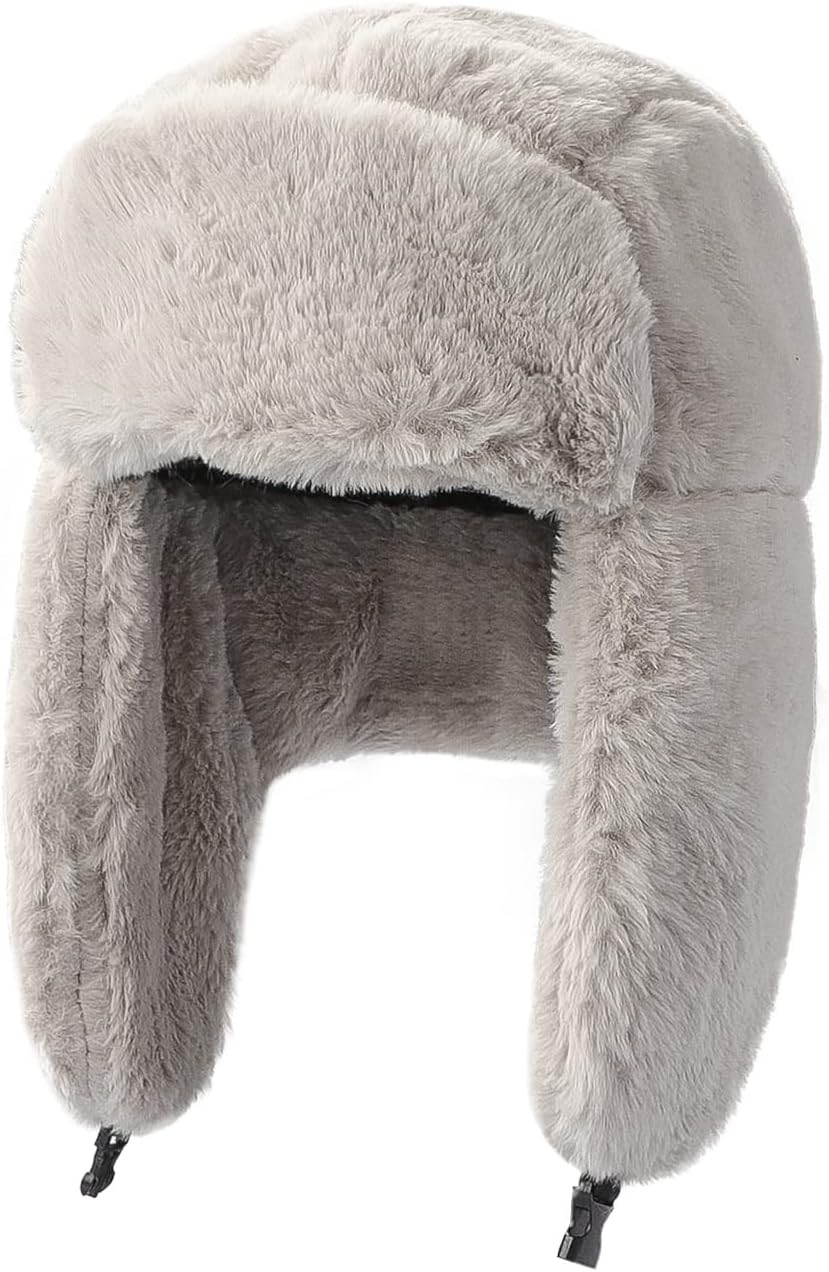 ITODA Winter Faux Fur Trapper Hats Windproof Ushanka Russian Hat Thermal Huntin