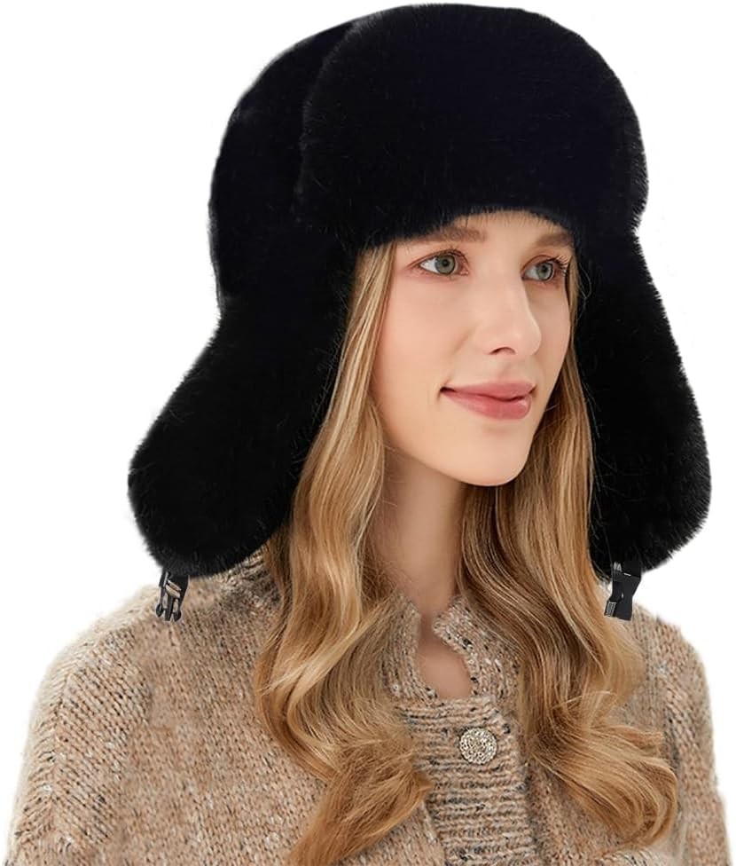 IBLUELOVER Women Bomber Hat Faux Fur Ushanka Russian Trapper Hat Earflap Thick