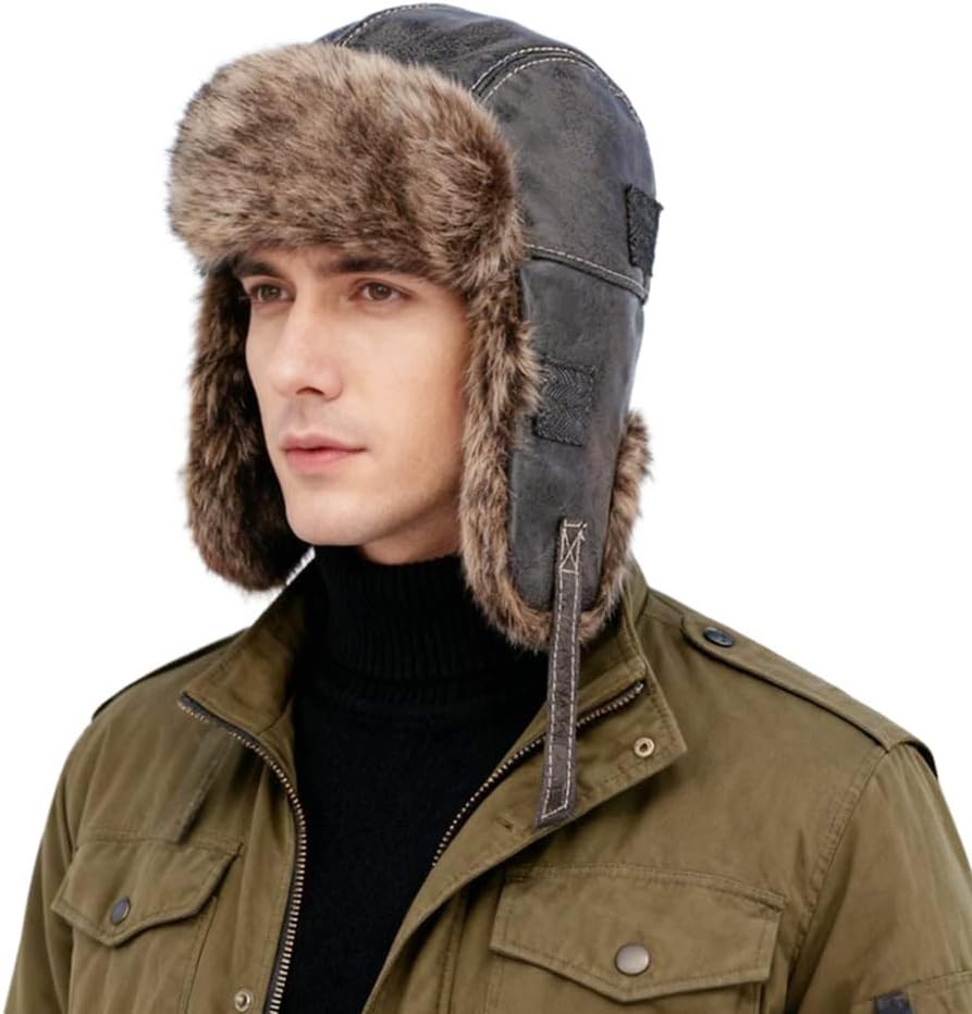 XGOPTS Mens Winter Trapper Hat Warm Bomber Hat Ushanka Faux Fur Russian Cap Wat