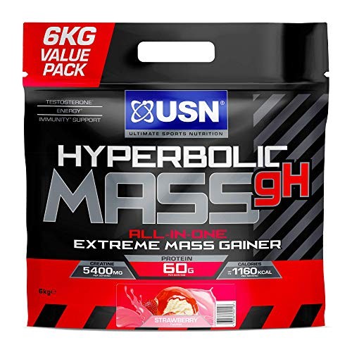 USN Hyperbolic Mass Strawberry 6kg: High Calorie Mass Gainer Protein Powder for