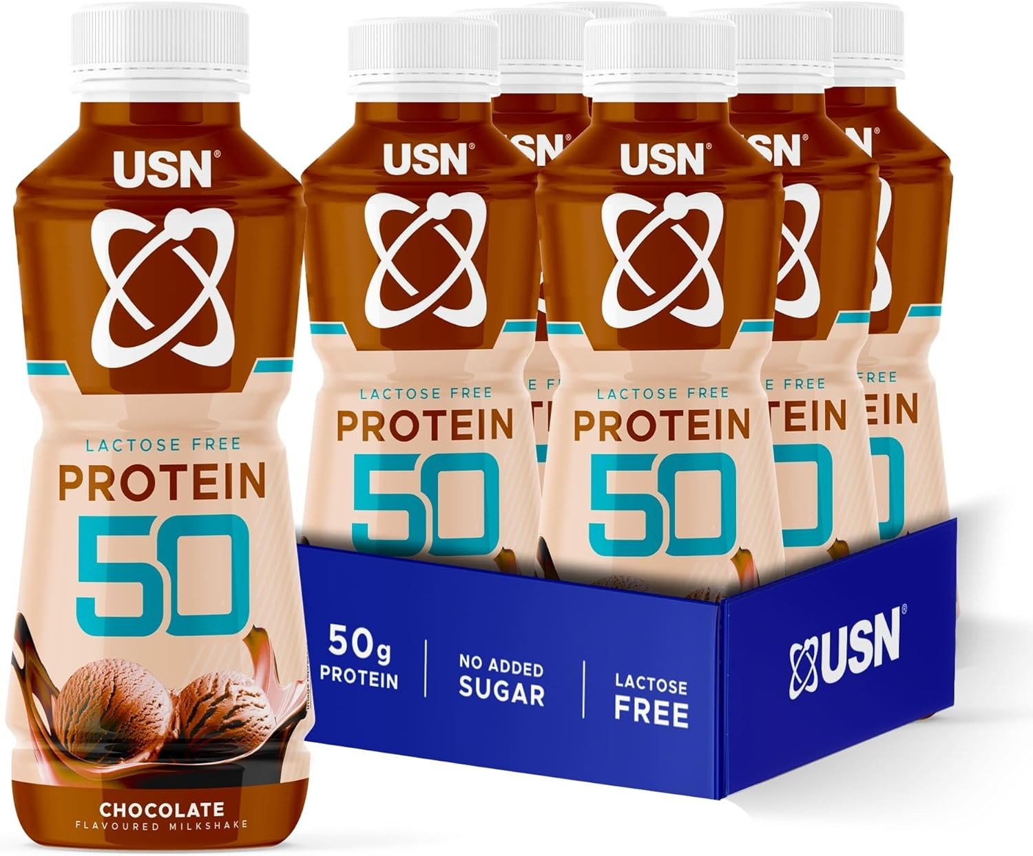 USN Trust 50 Ready to Drink Protein Shake | Chocolate | 50g Protein | Lactose Free, No Added Sugar | 6 x 500ml Bottles | High Protein On-the-Go Snack & Lean Muscle Support