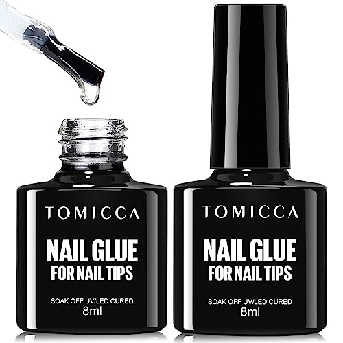 TOMICCA Gel Nail Glue Set, 8 in 1 and No Wipe Top Coat Kit for Acrylic Nails, Super Strong Brush On False Nails Polish, UV/LED Lamp Cure Required, 8.0 millilitre