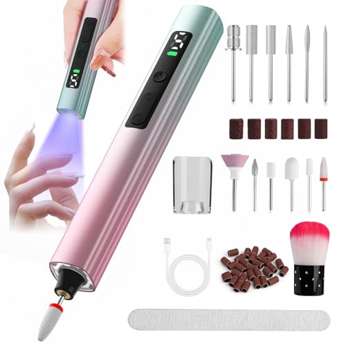PUGTOW Electric Cordless Nail Drill, Nail File Kit with UV Light Lamp, Rechargeable Battery, and LED Light, 7+ Bits Kit for Gel, Acrylic, Dip Nails, Stylish Portable Design for Home & Salon (Gradient)