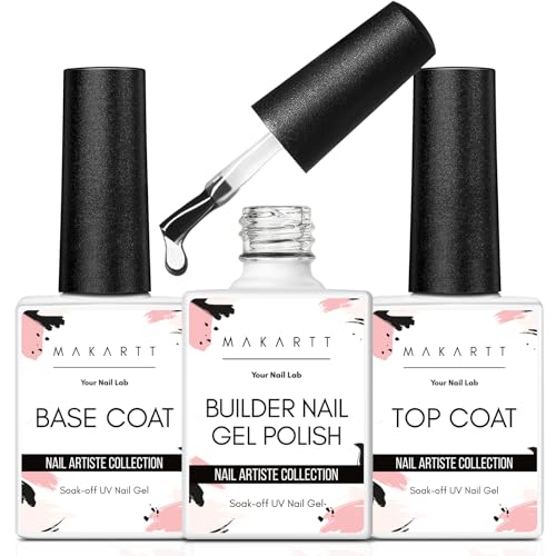 Makartt Builder Nail Gel with Top Coat Nail Polish & Base Coat Set - 3Psc No Wipe Hard Gel for Long Lasting, 7 in 1 Clear Gel Builder Kit for Nails Strengthener Extension in a Bottle, UV Lamp Required
