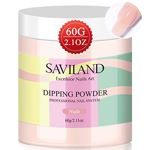 Saviland 60g Nudes Dipping Powder - 2.1oz Big Bottle Dip Powder French NailArt Starter Manicure,Strengthen NailPowder, Dip Nails Kit Easy for Nail Beginner to Use No UV Lamp Needed