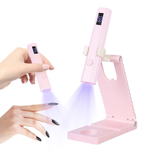 UV Lamp for Gel Nails, UV Light for Gel Nails with Stand, Handheld UV Nail Lamp Rechargeable, 2 Timers Nail Lamp for Gel Polish, Nail Dryer Portable,Pink