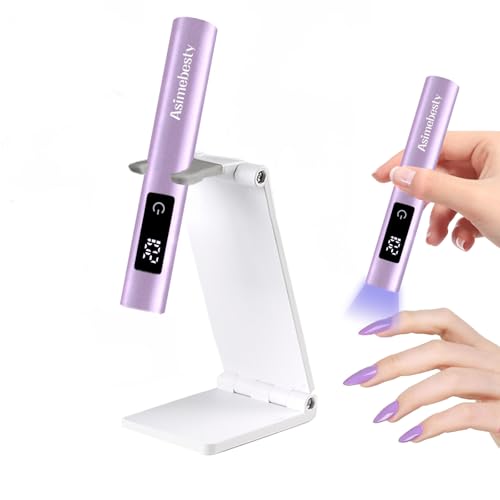 Asimebesty UV Lamps for Gel Nails, Mini Handheld UV LED Nail Lamp with Stand, Portable Rechargeable Nail Dryer with LED Screen 20/60/90S Timer Flash Cure UV Nail Lamp for Fast Drying Violet