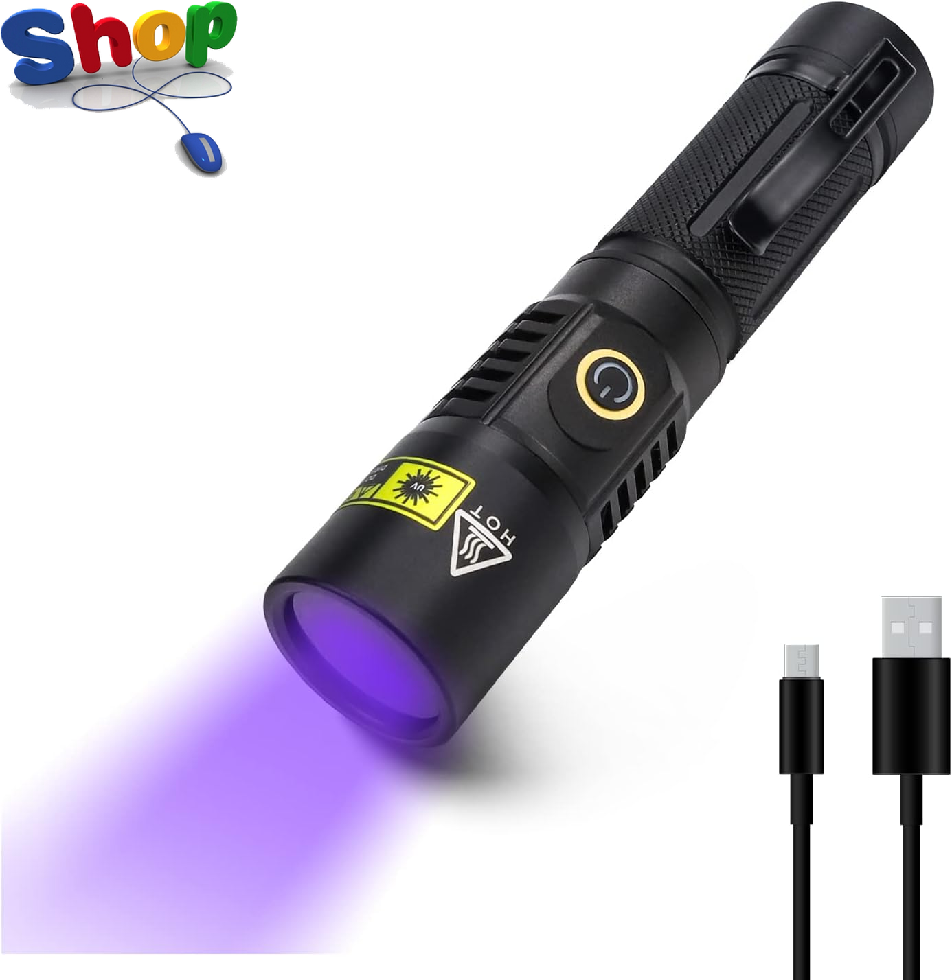 GEARLITE UV Torch Rechargeable Ultraviolet Flashlight, Mini UV Light Torch with 395nm, Portable Black Light Detector for Pet Urine, Stain, Bed Bugs
