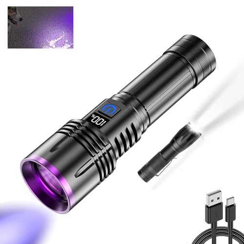 30W 365nm UV Torch Light USB Rechargeable Black light Torches High Power UV LIGHT for Resin Curing,Pet Urine Detection,Bed Bugs,Ringworm,Minerals,Blood Tracking,Scorpion,Rockhounding,A/C Leak Detect