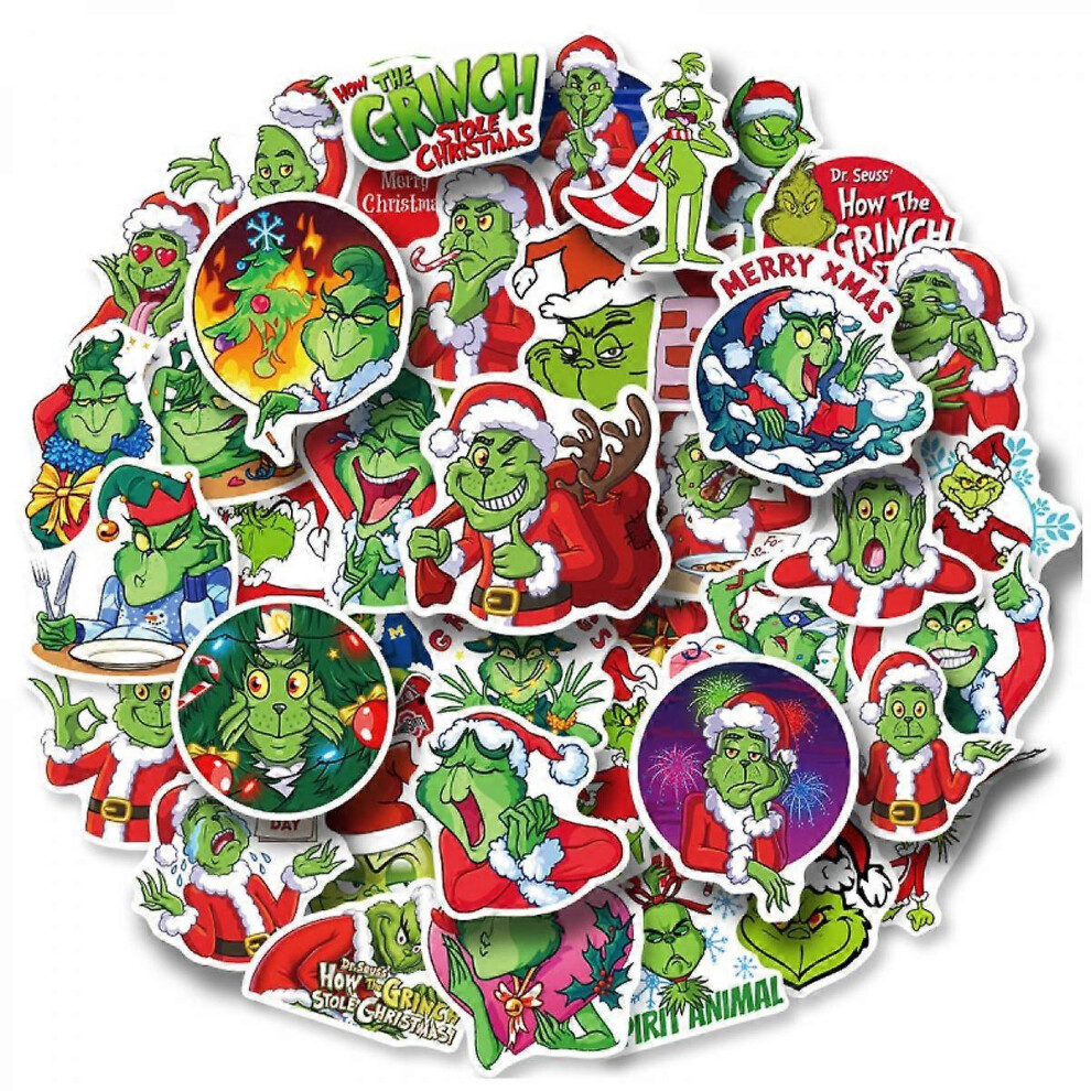 (As show, One size) Green Monster Grinch Animated Movie Stickers, Set of 50, Waterproof and UV Resistant, Great for All Your Gadgets